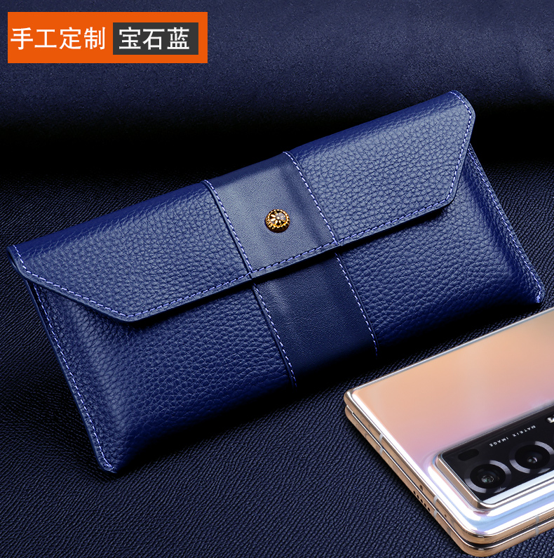 沃比羅適用于VIVOX Fold手機保護套時尚輕奢防摔商務新款真皮全包XFold信封款簡約高級感手機皮套創意式男女