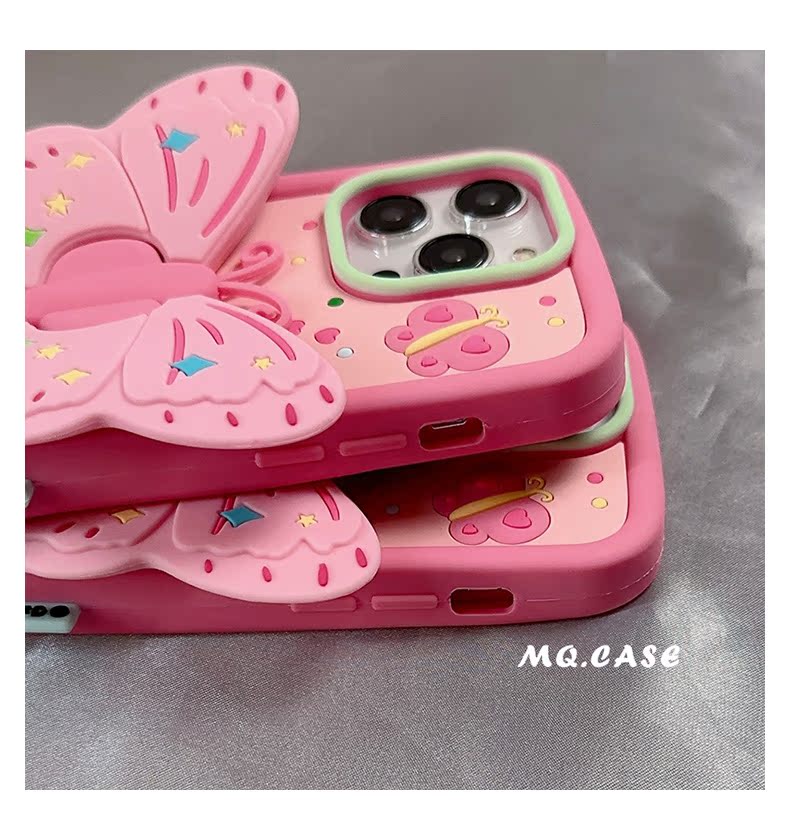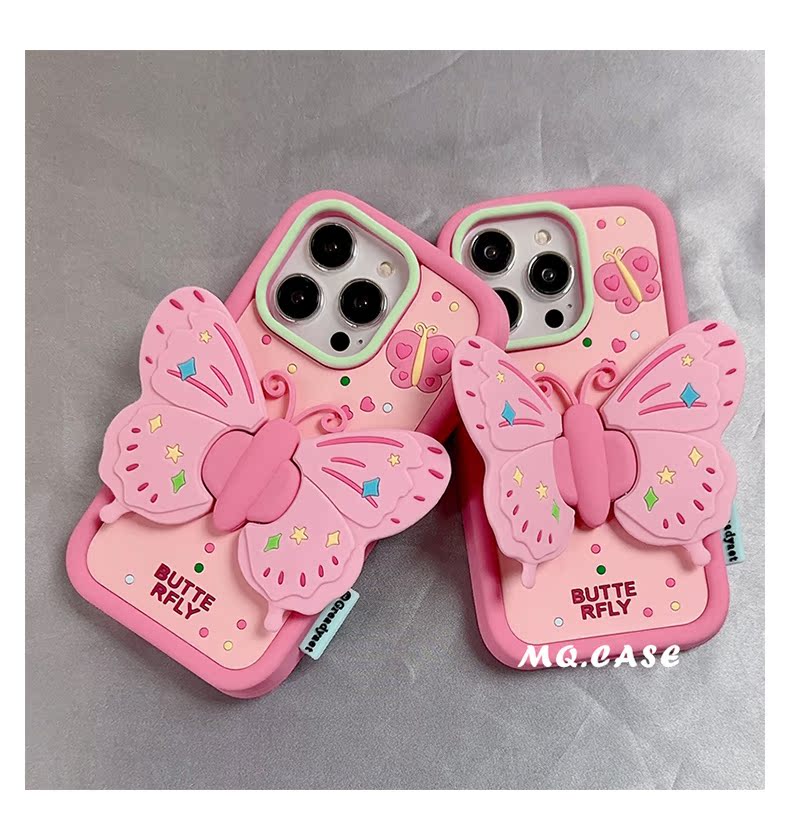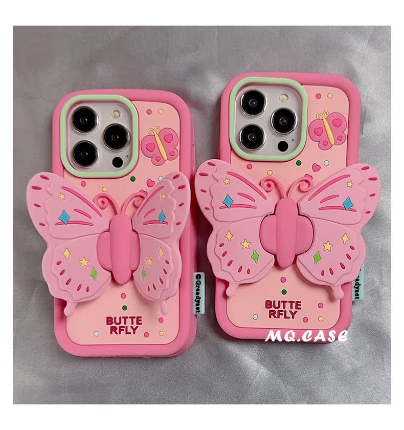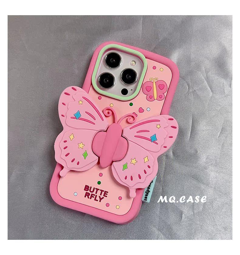 孫怡同款粉色蝴蝶適用蘋果14手機殼iPhone13Promax新款高級感保護套12支架11全包硅膠防摔女款軟殼少女心華為