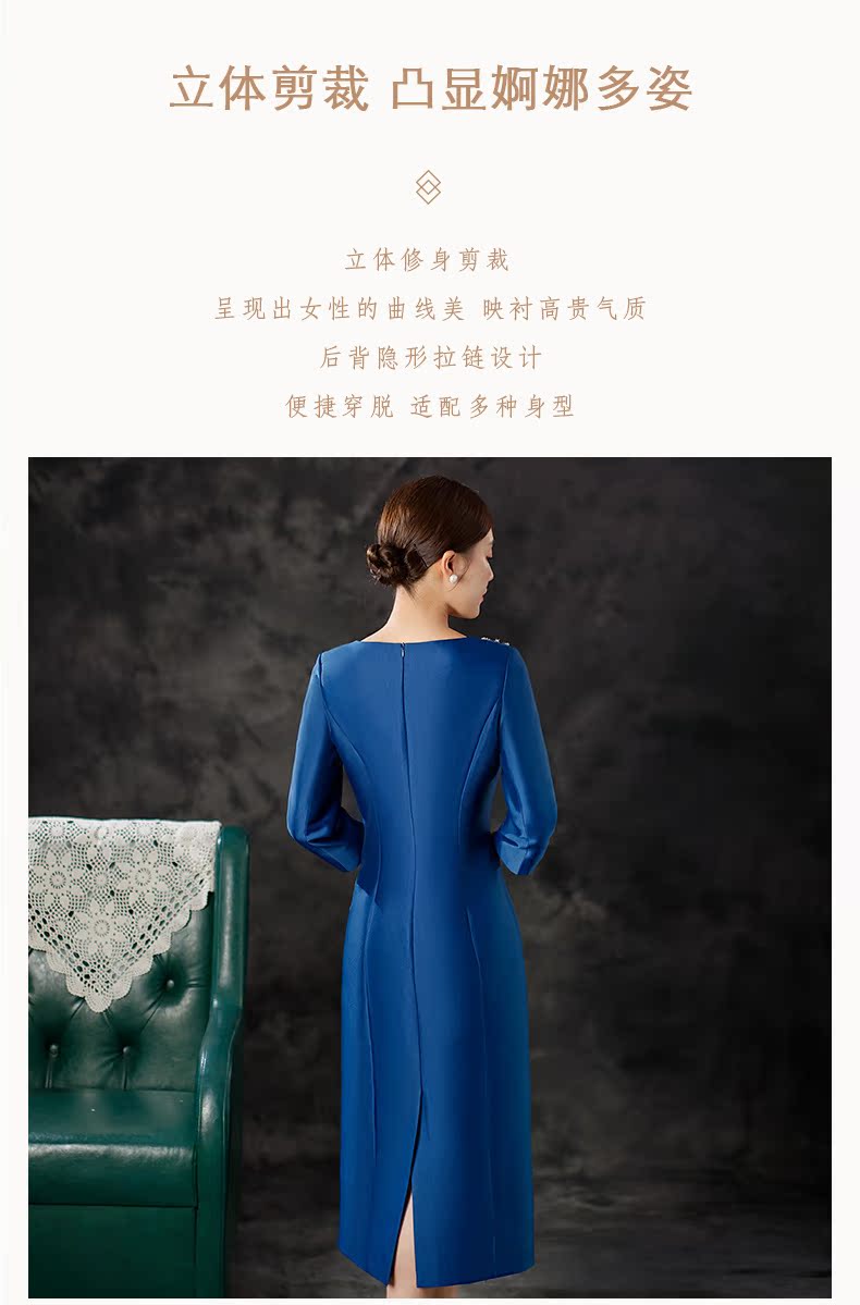 藍色媽媽婚宴裝平時可穿高貴年輕氣質高端喜婆婆婚禮禮服秋冬長袖