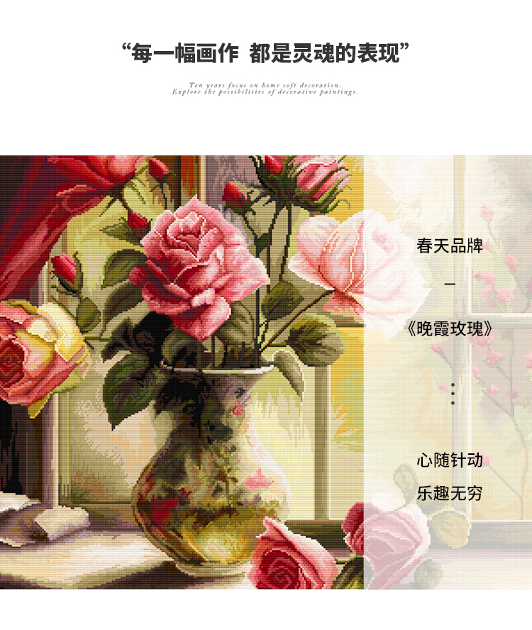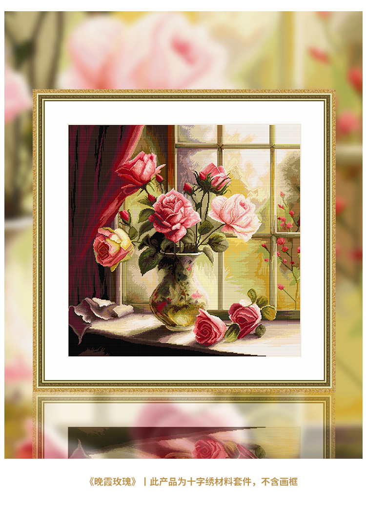 春天十字繡客廳臥室花卉歐式簡約晚霞玫瑰手工小件自己繡2023新款