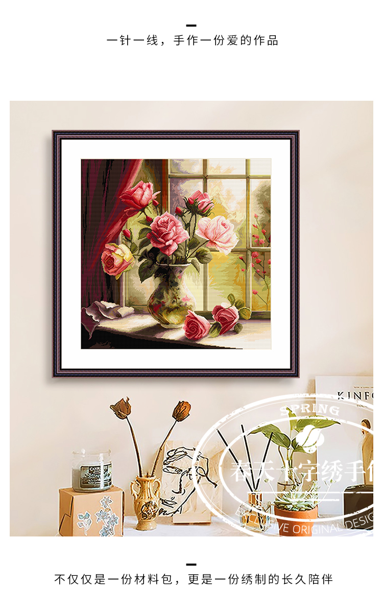 春天十字繡2023新款客廳臥室花卉歐式簡約晚霞玫瑰手工小件自己繡
