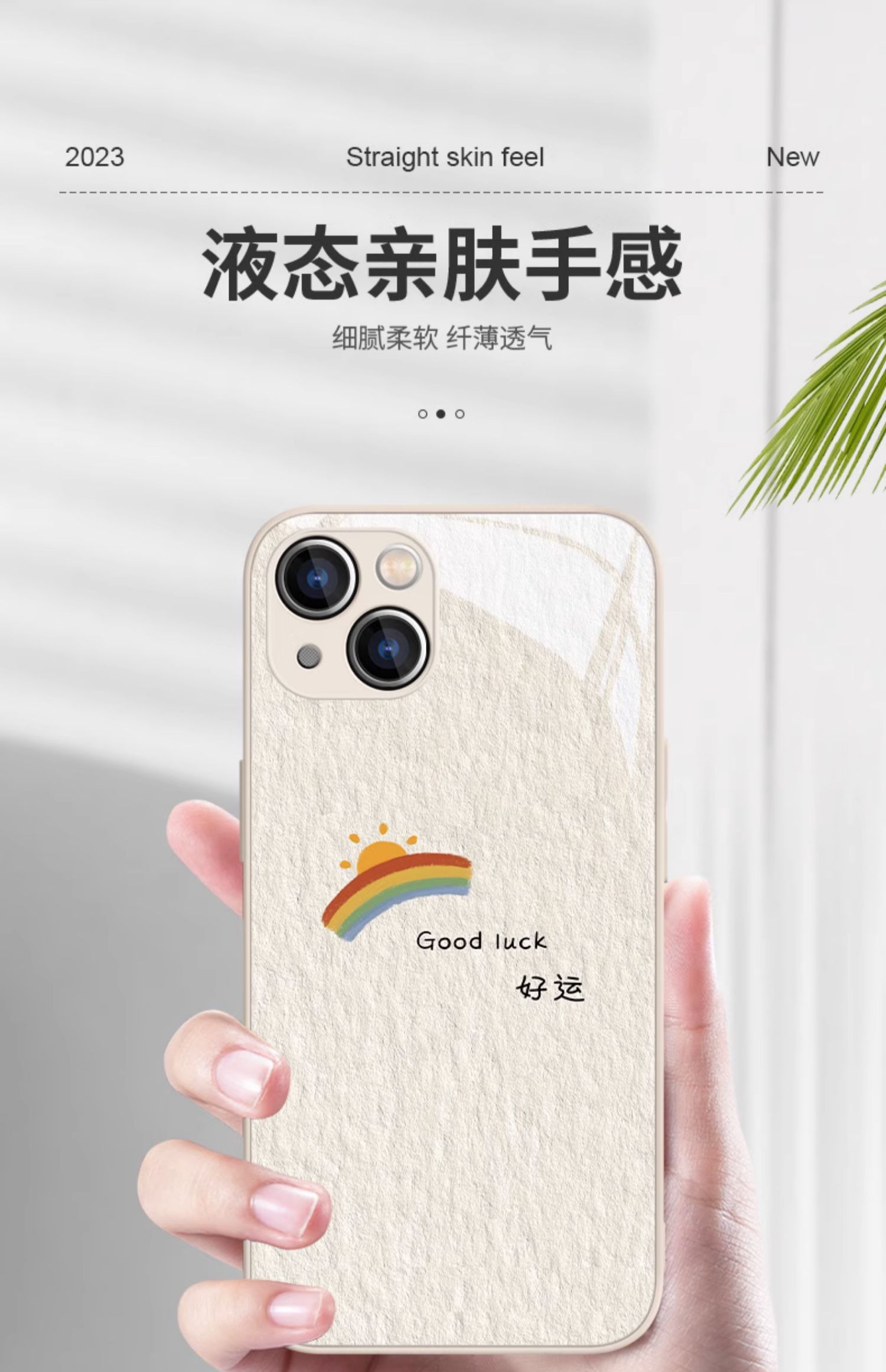 適用蘋果14pro手機殼15情侶iPhone13promax油畫風12mini彩虹11好運8plus7p簡約xsmax小眾xr玻璃x文字ip14套6s