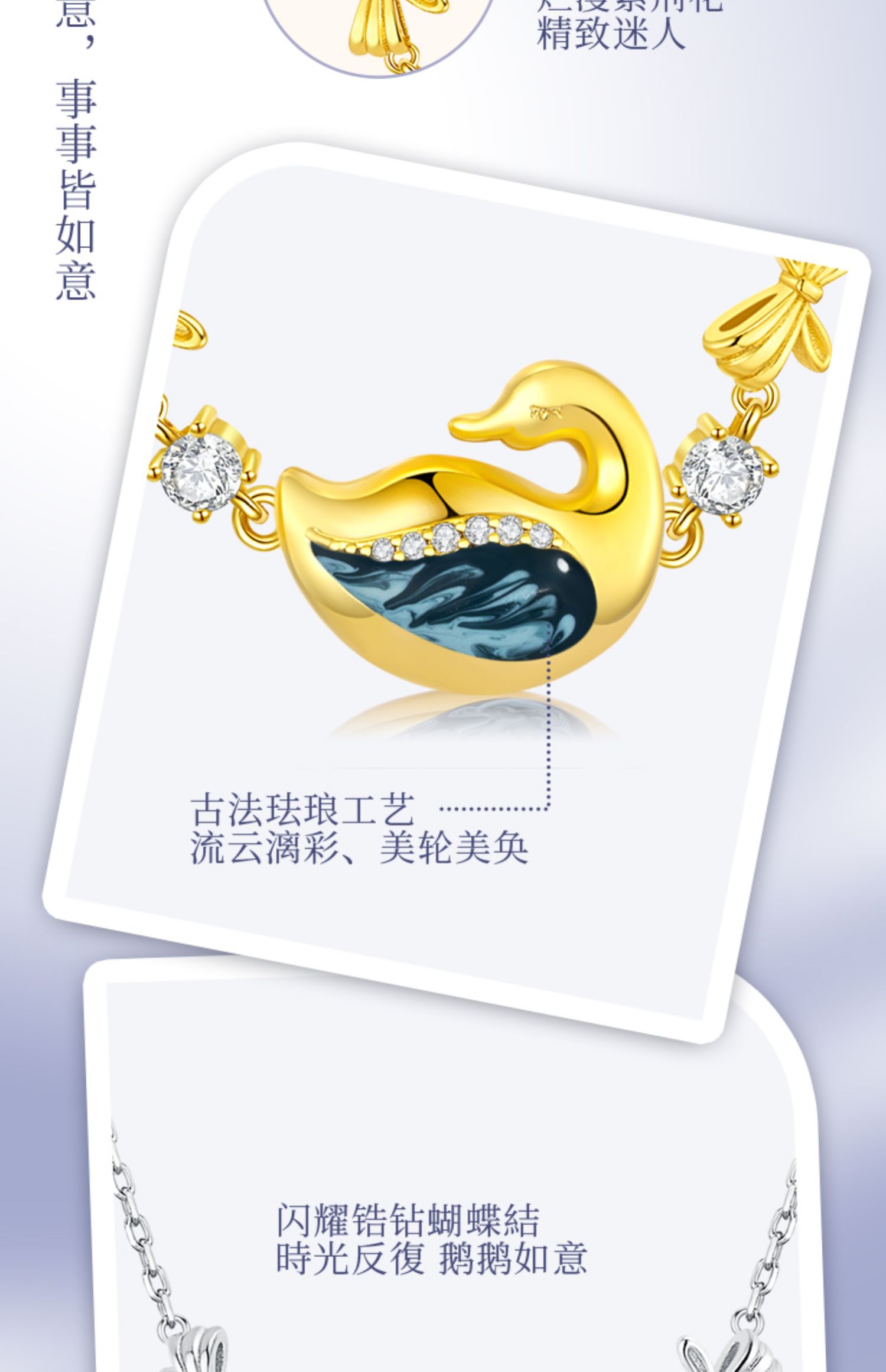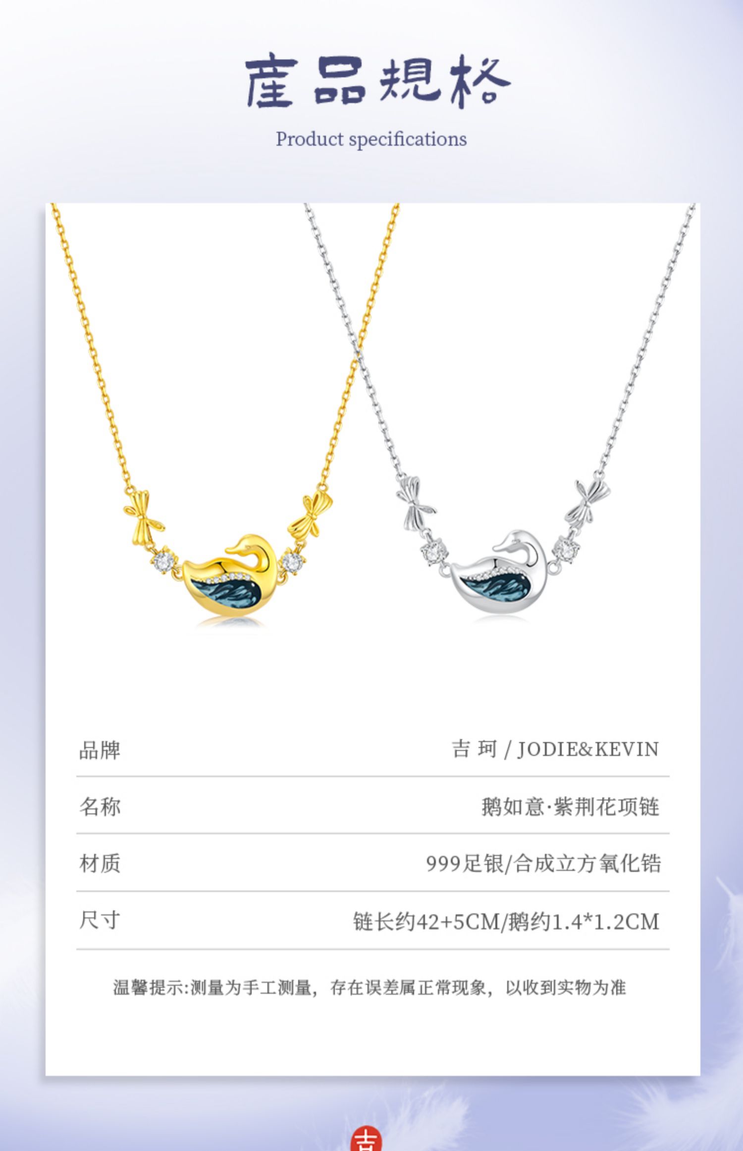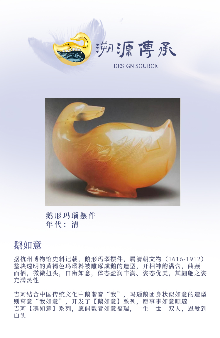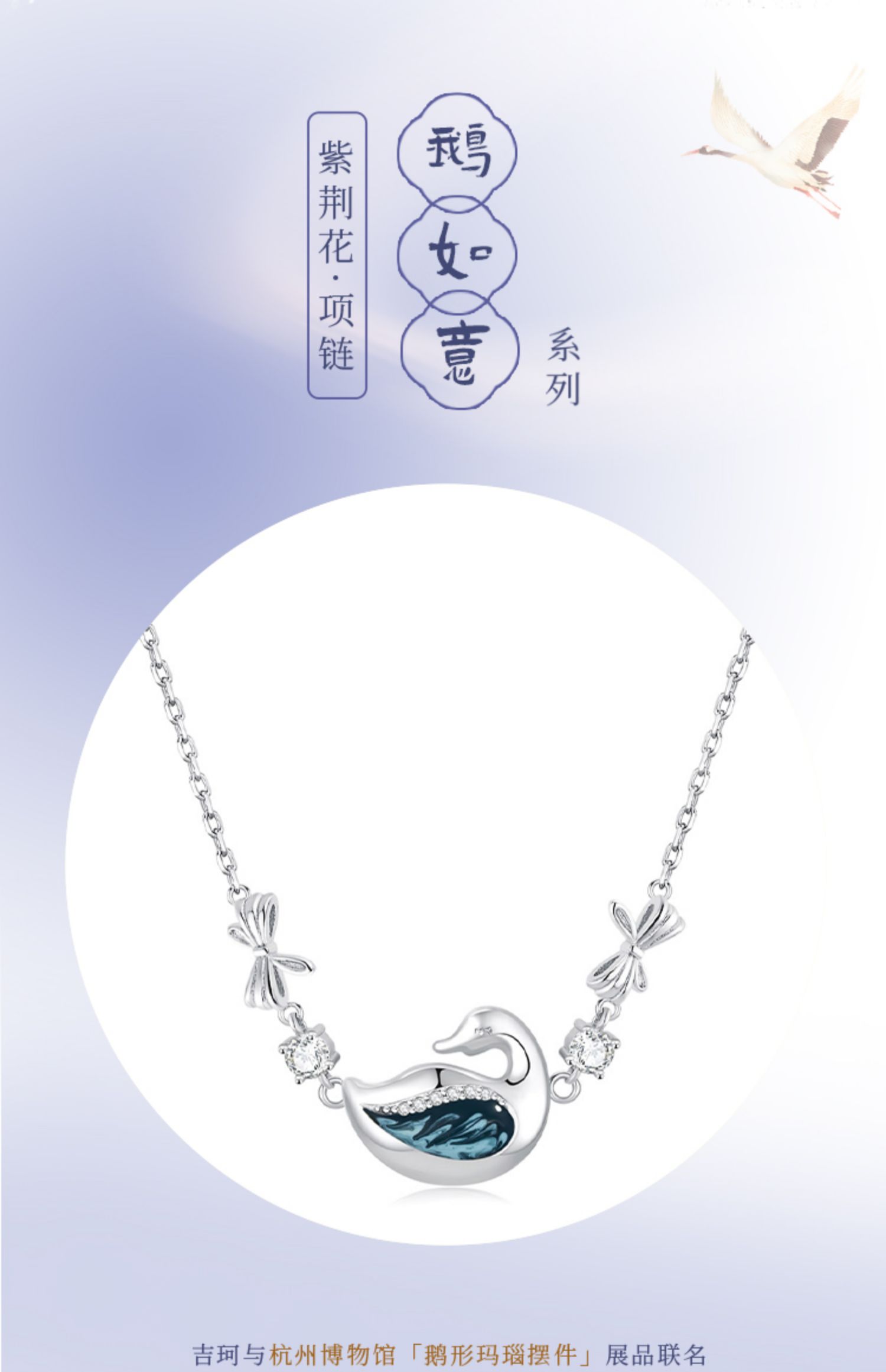 吉珂X杭州博物館聯名款鵝如意紫荊花999純銀項鏈女足銀天鵝吊墜