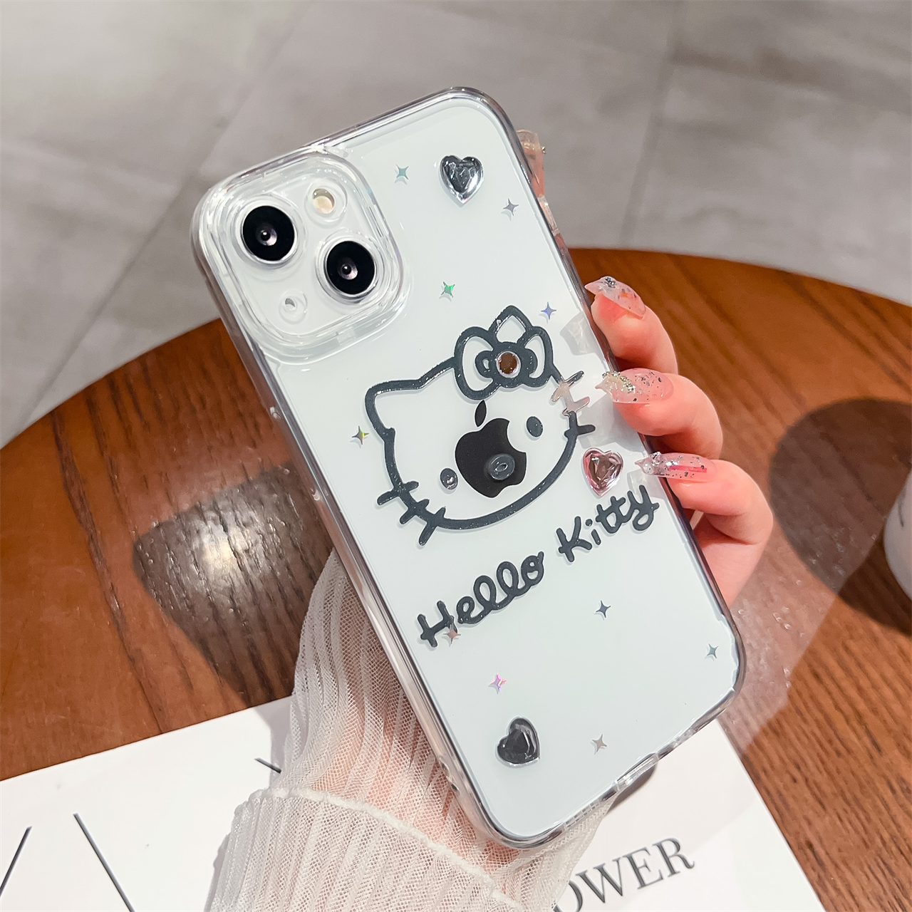 卡通可愛Hellokitty凱蒂貓適用于蘋果14 13手機殼iPhone12 11promax滴膠水鉆XR定制78plus全包SE軟殼保護套女