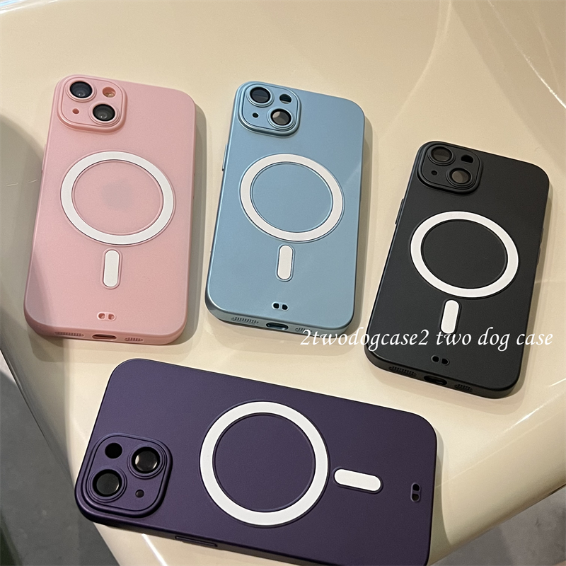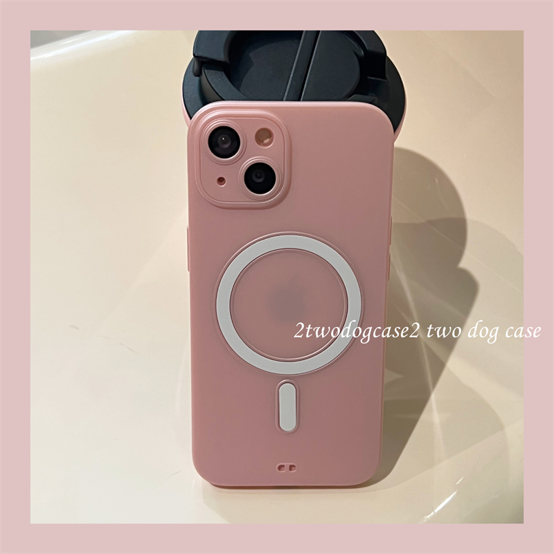 粉色可愛磁吸殼簡約適用12promax全包鏡頭膜Magsafe保護殼13/14Pro/11磨砂金屬粉漆殼二合一