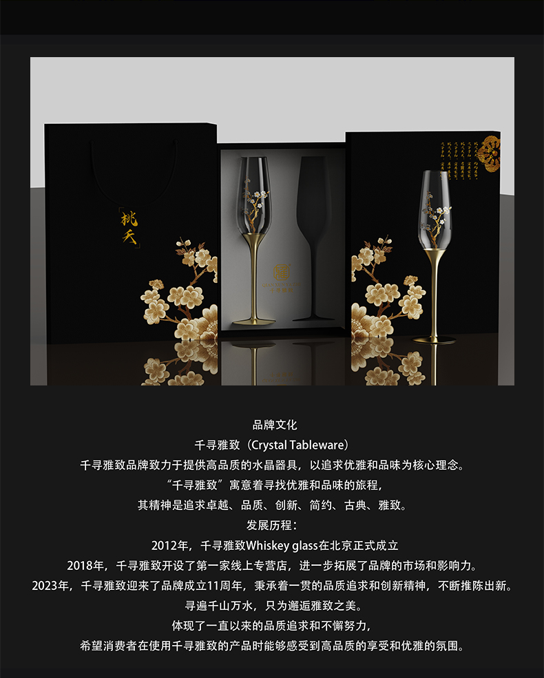 桃夭系列描金水晶香檳杯輕奢新婚訂婚禮物高檔氣泡高腳杯一對禮盒