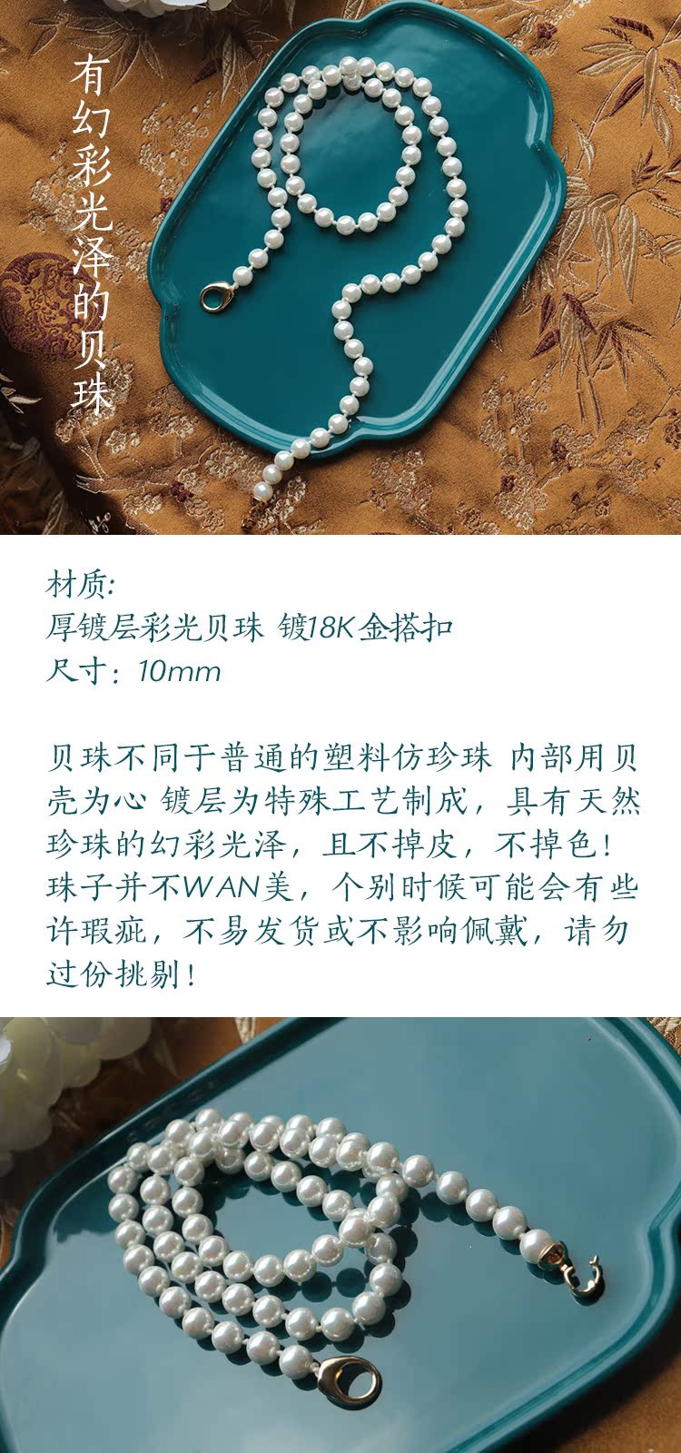 甄源色純手工打結百搭幻彩貝珠珍珠瑣骨項鏈旗袍禮物輕奢小眾頸鏈