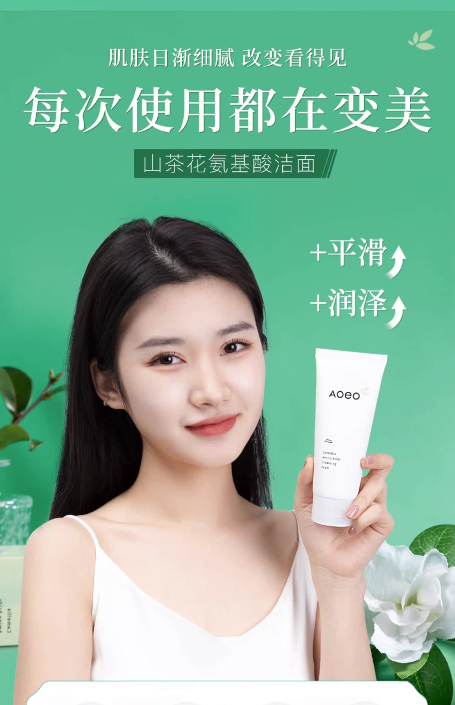 AOEO山茶花氨基酸洗面奶女男士專用潔面乳溫和美白旗艦店官方正品