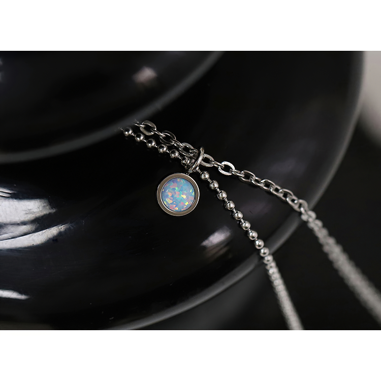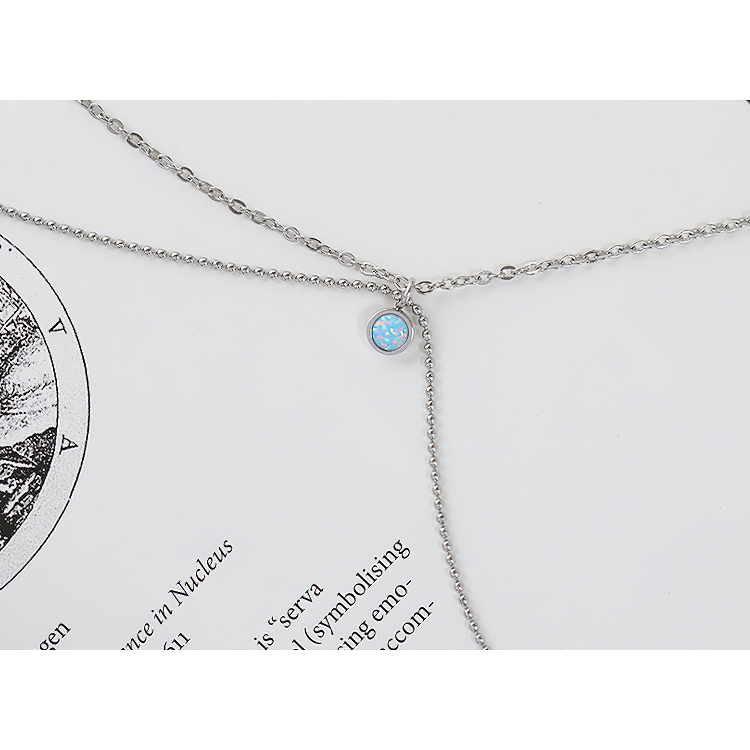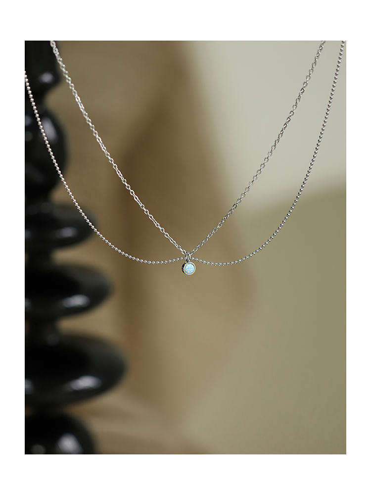 法式浪漫雙層項鏈女夏迷你吊墜澳寶鎖骨鏈不怕水鈦鋼個性頸鏈銀色