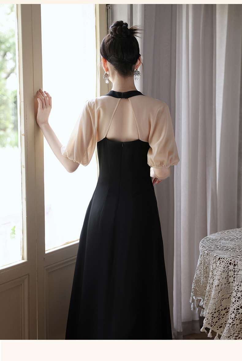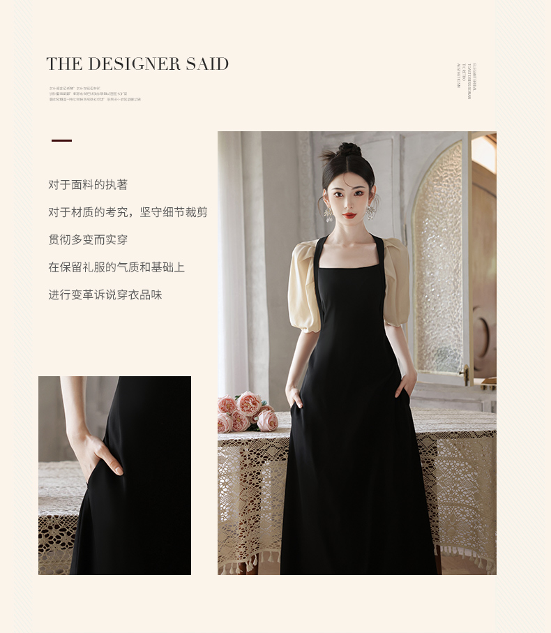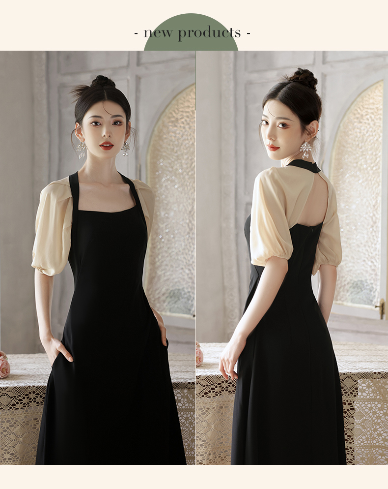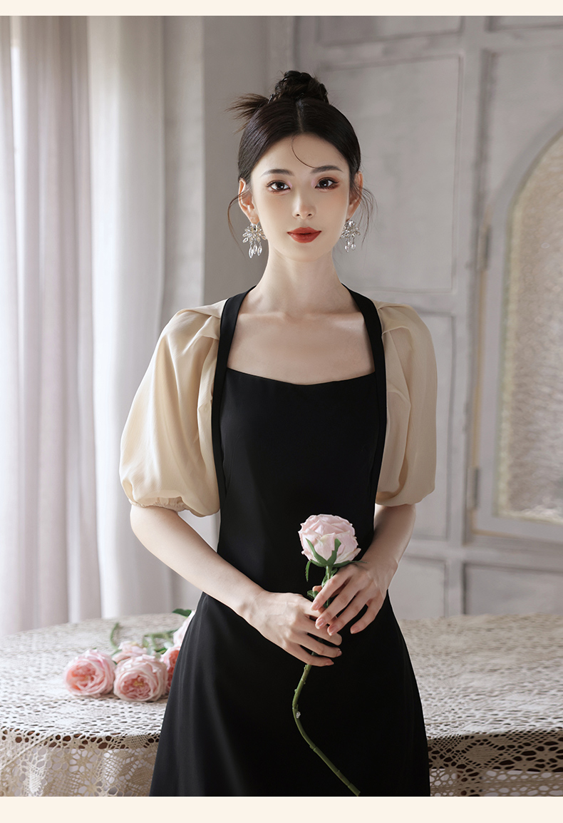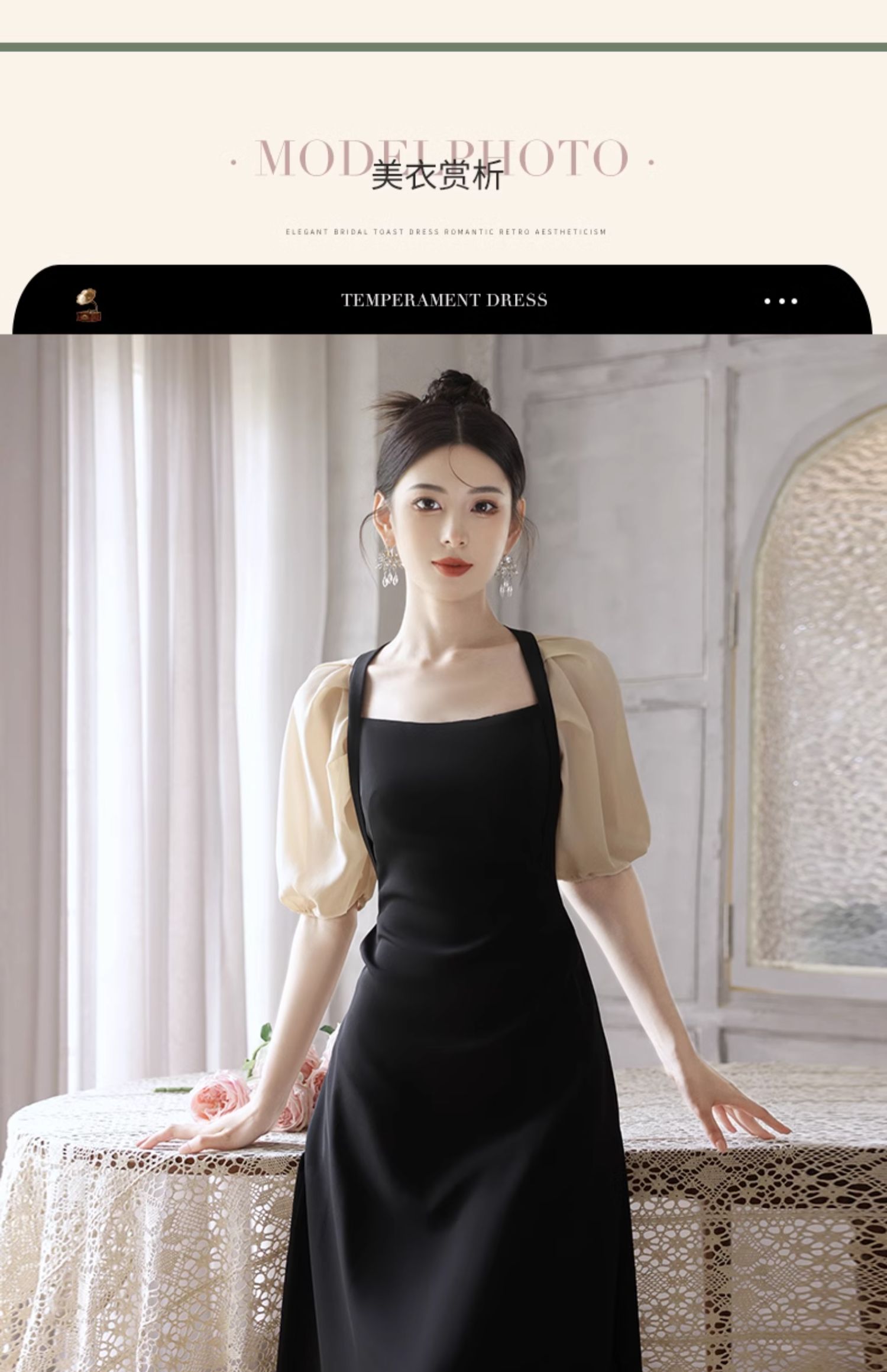 晚禮服女宴會氣質輕奢小個子眾高端法式洋裝高級感中袖黑色連衣裙