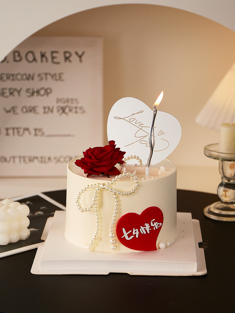 網紅七夕情人節生日蛋糕裝飾擺件愛心鏡子仿真玫瑰花蠟燭烘焙插件