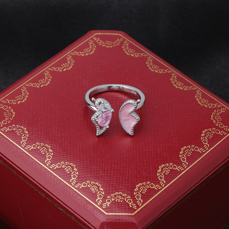 粉色水滴蝴蝶戒指女小眾簡約指環2023新款鑲鉆氣質滴釉創意食指戒