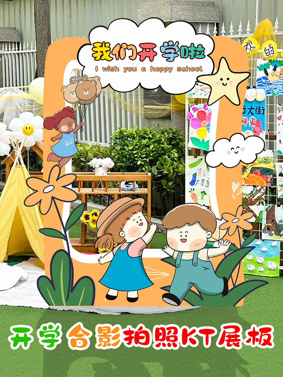 我們開學啦活動簽到拍照背景墻KT板定制幼兒園開學季場景布置裝飾
