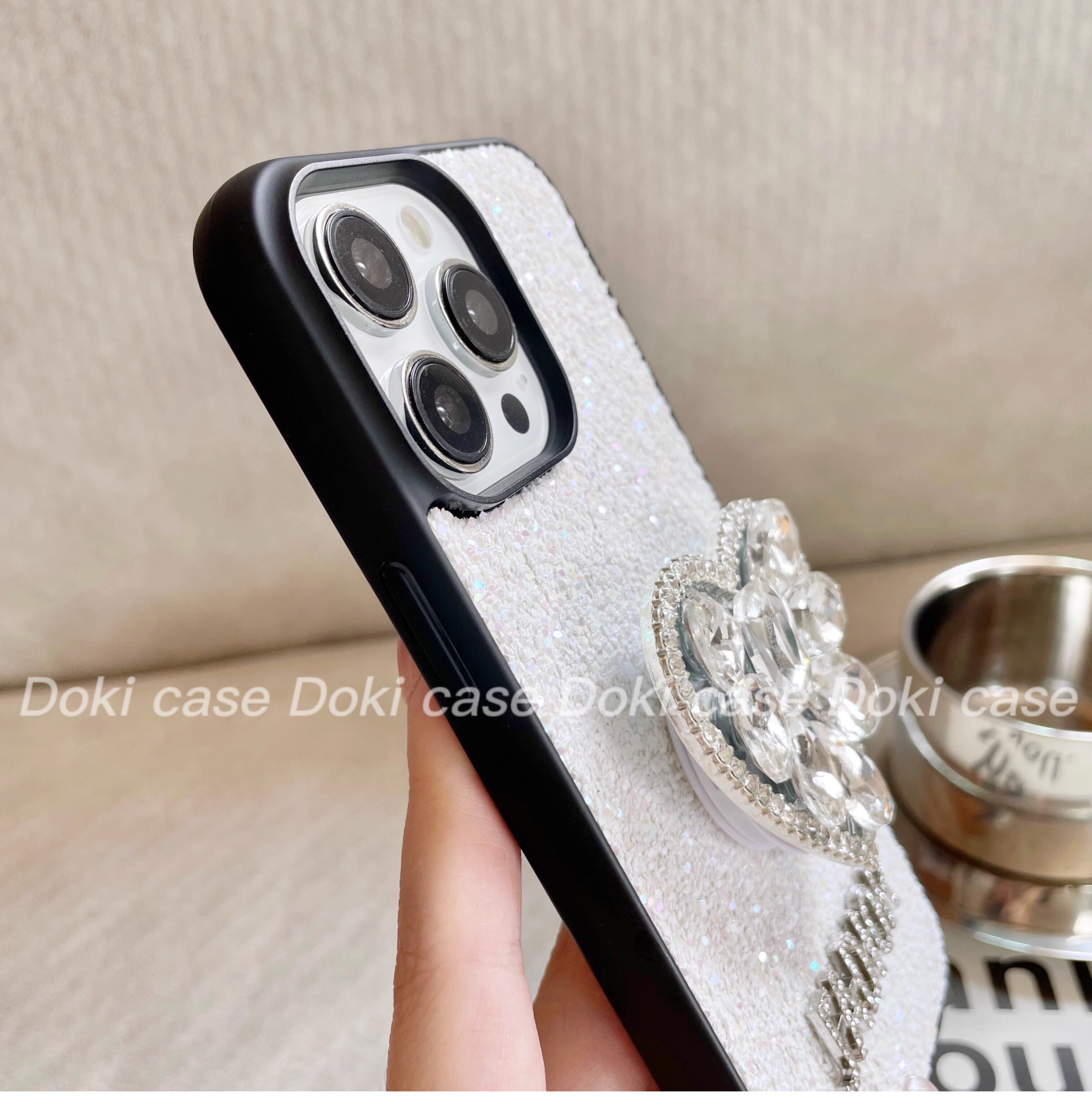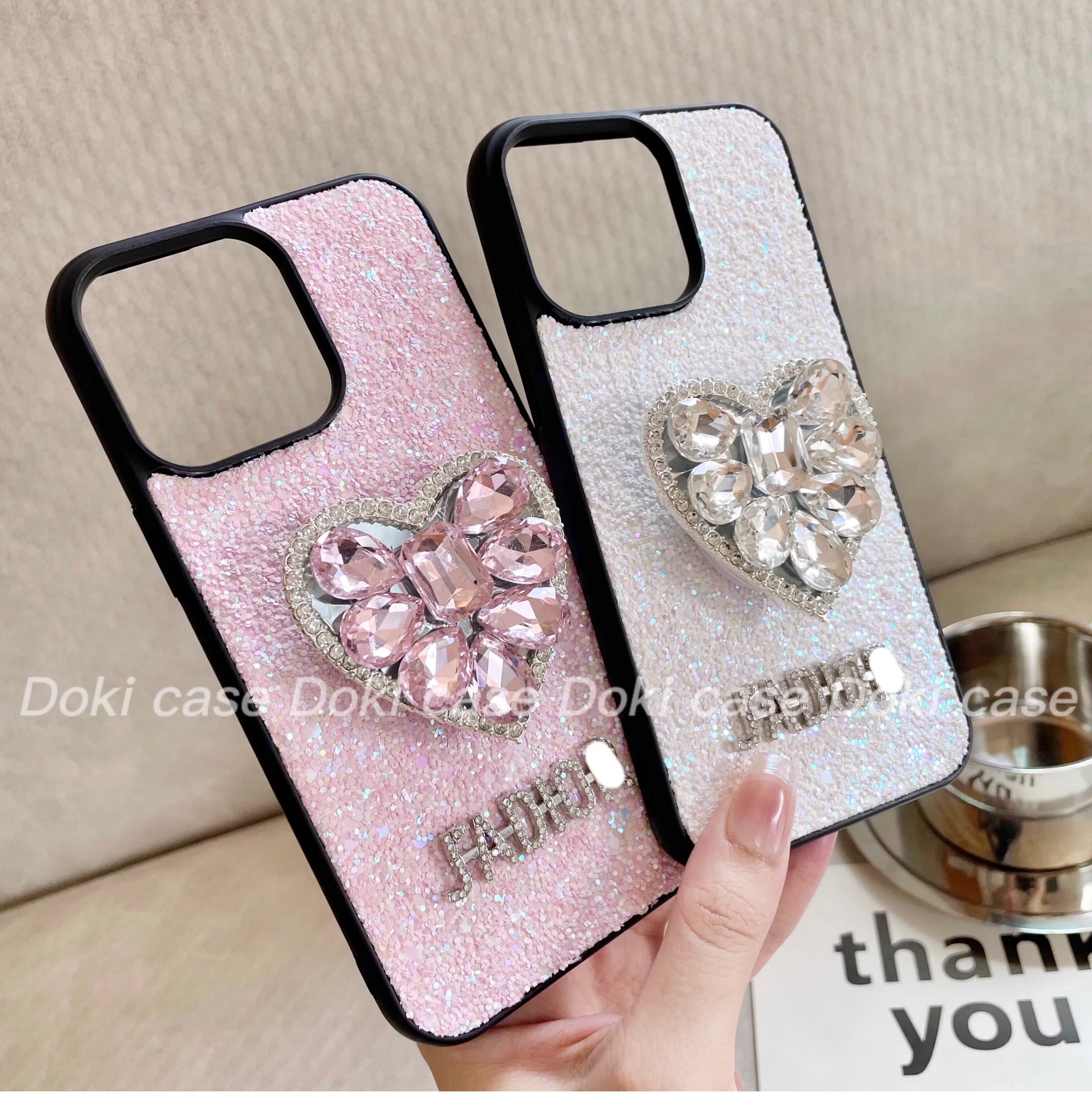 Dokicase 小眾輕奢網紅愛心水鉆支架適用蘋果14promax手機殼iPhone15/13新款閃粉流沙12pro高級感防摔保護殼