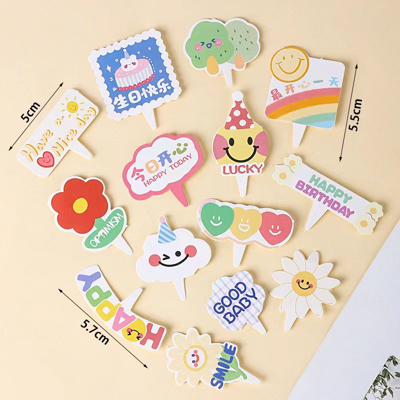 網紅ins烘焙蛋糕裝飾插件卡通兒童生日快樂甜品裝扮插牌紙杯插卡