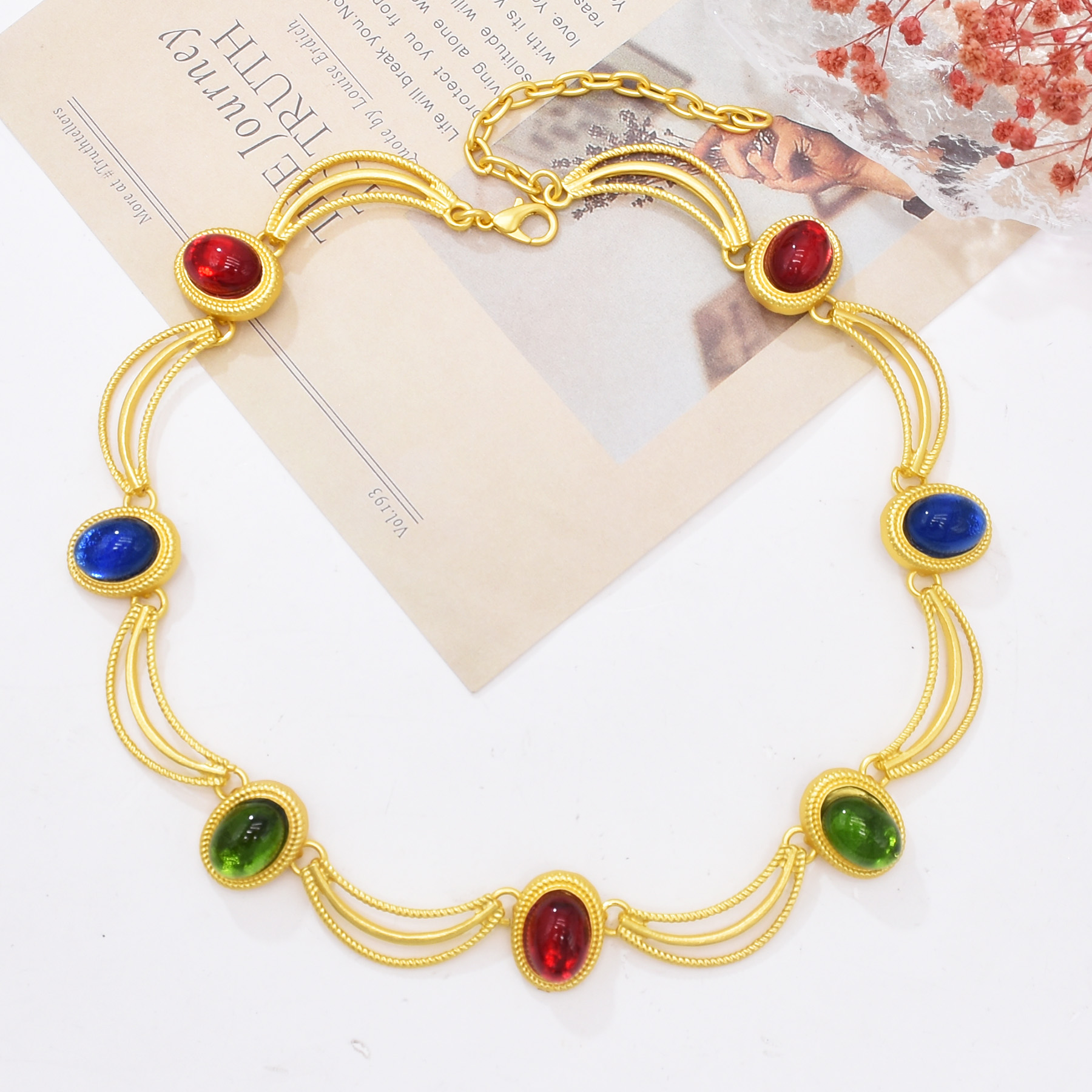 歐美氣質復古短款項鏈金屬保色vintage古著耳飾品宮廷古典鎖骨鏈