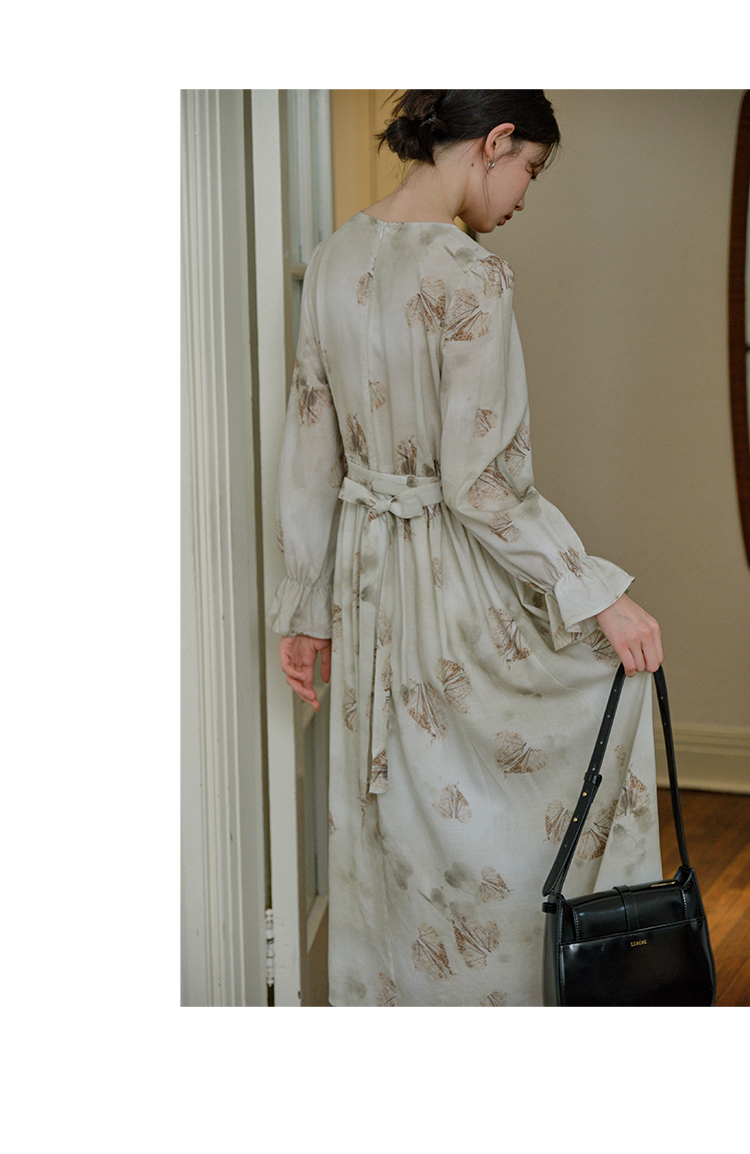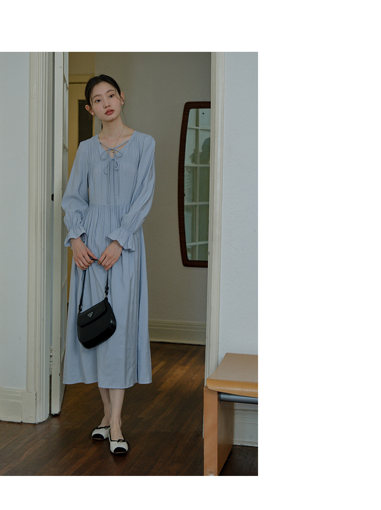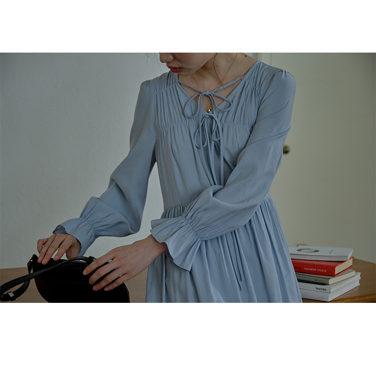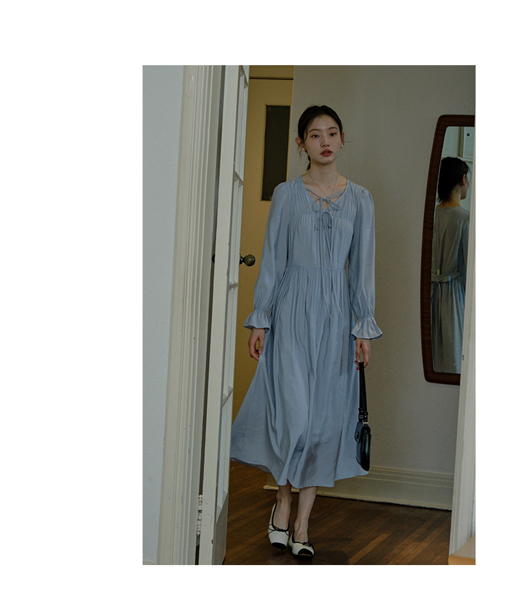 CHACHASTU 復古水墨風氛圍感系帶收腰連衣裙女秋冬長袖小個子裙子