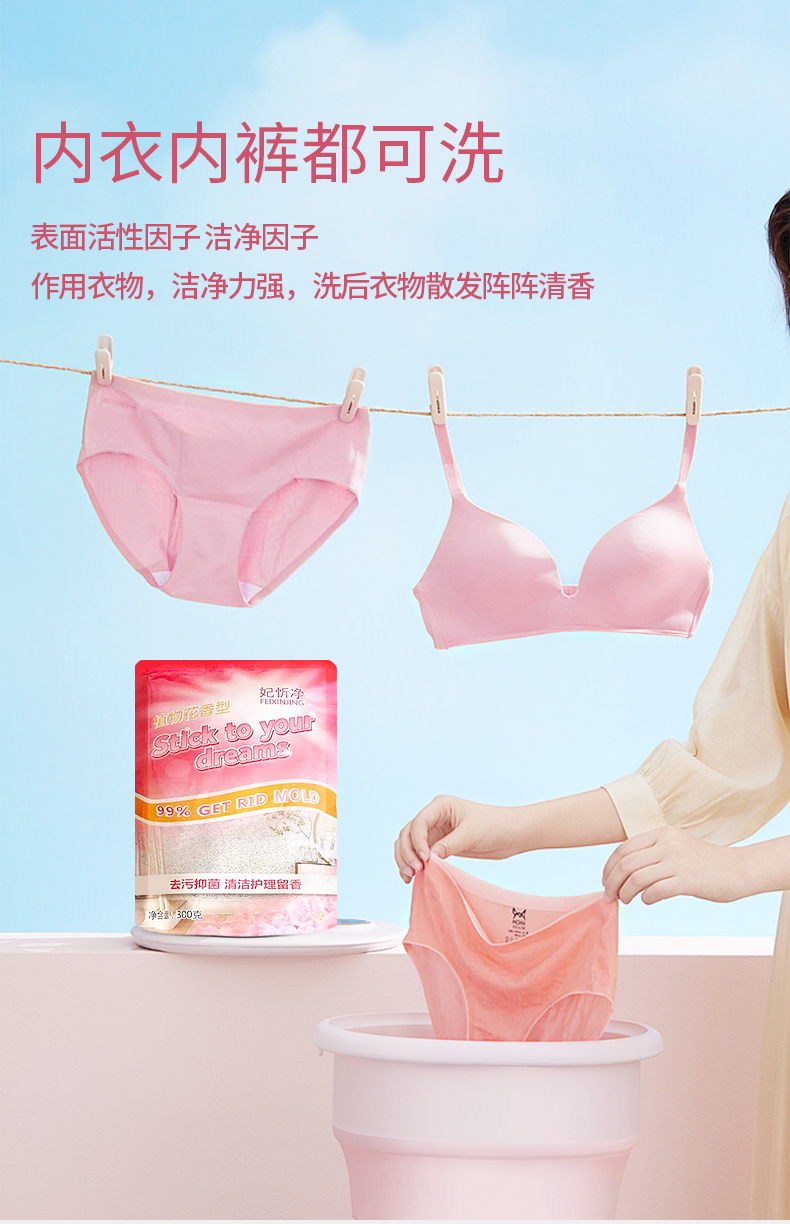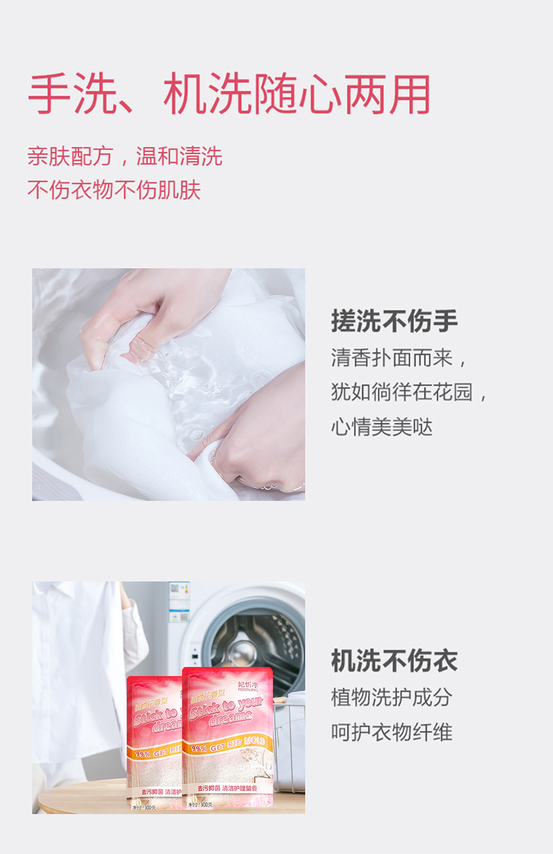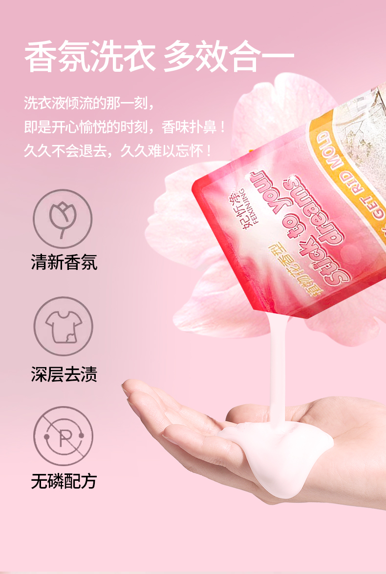 洗衣液深層潔凈去污持久留香清潔護理300g袋裝植物花香洗衣液