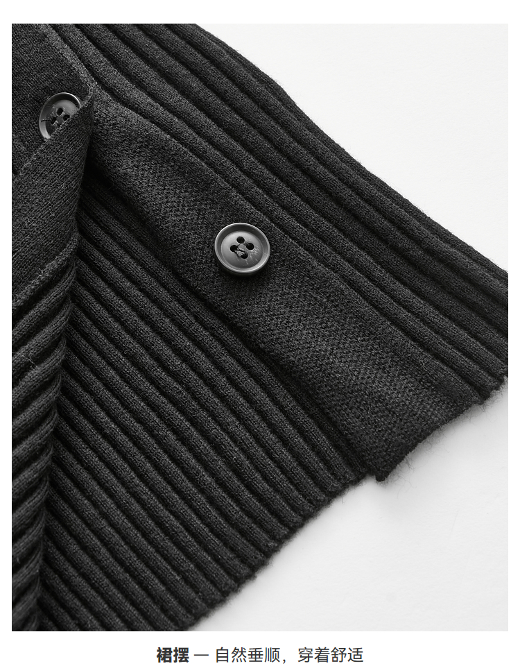 三福連衣裙秋季2023新款女裝斜扣開叉修身方領長裙子冬女裝476590