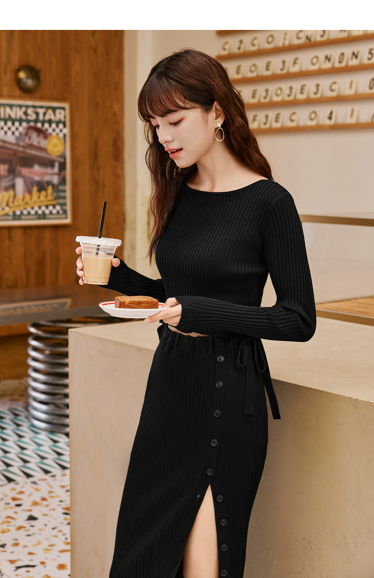 三福針織毛衣兩件套2023秋學院風V領背心短裙馬甲百褶裙套裝女653