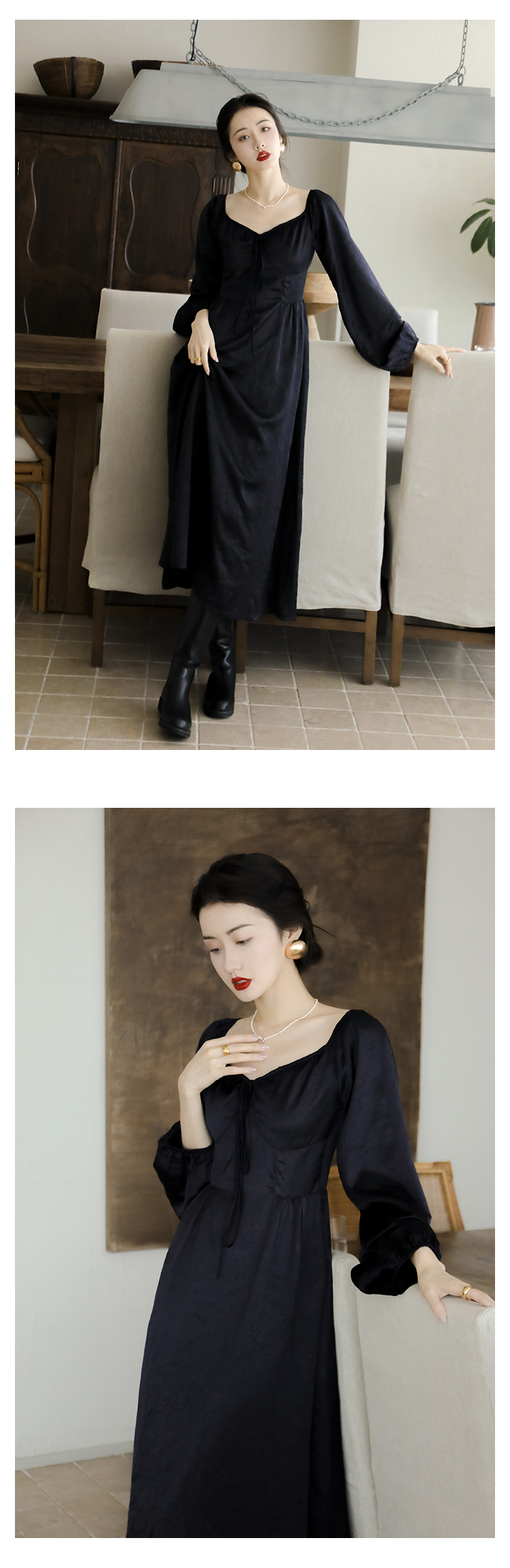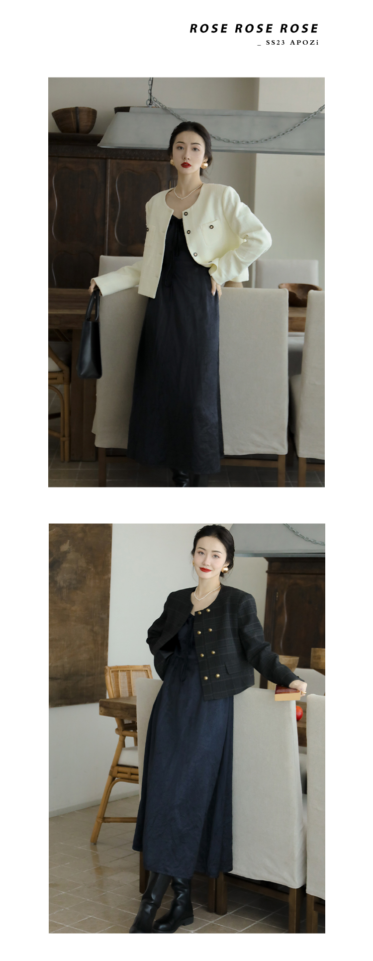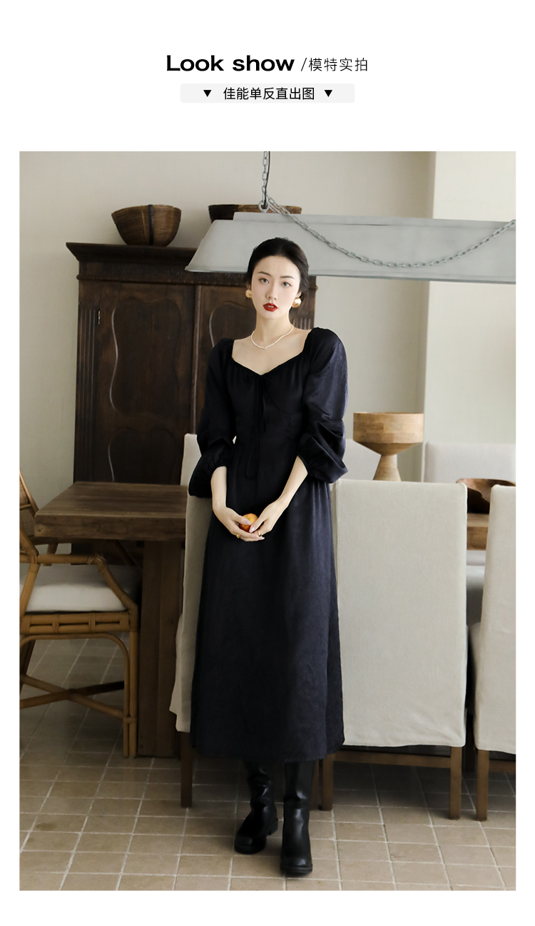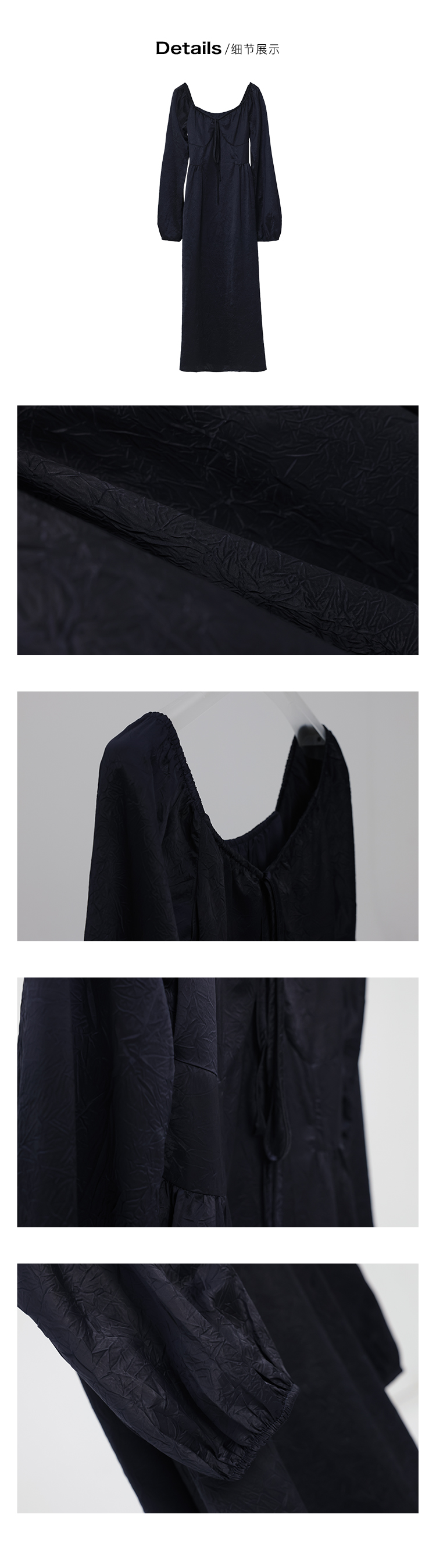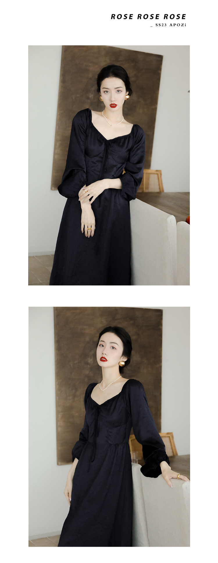 APOZi 獨家設計城市計劃系列新中式藏青方領田園風連衣裙淑女純色
