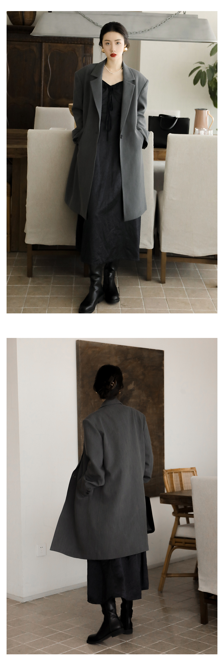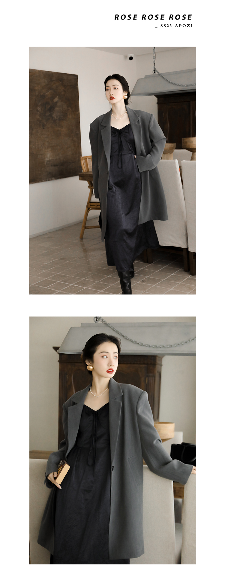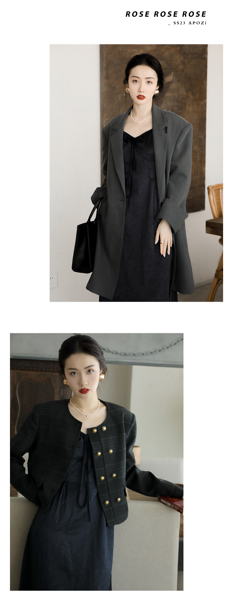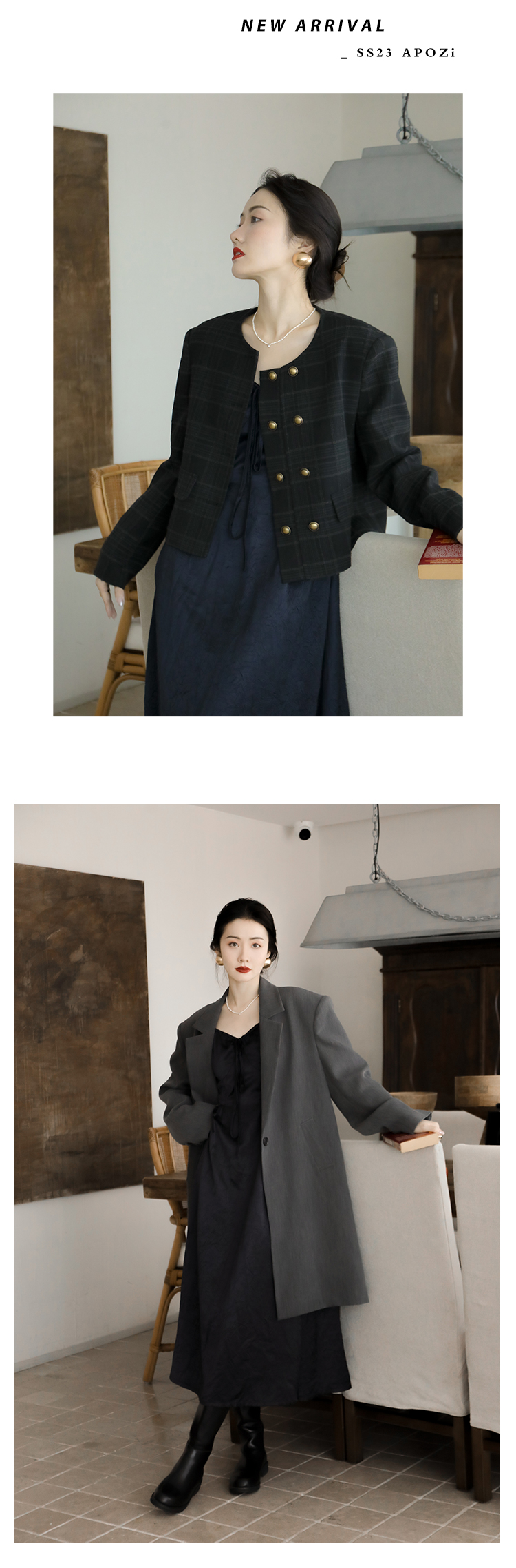 APOZi 獨家設計城市計劃系列新中式藏青方領田園風連衣裙淑女純色