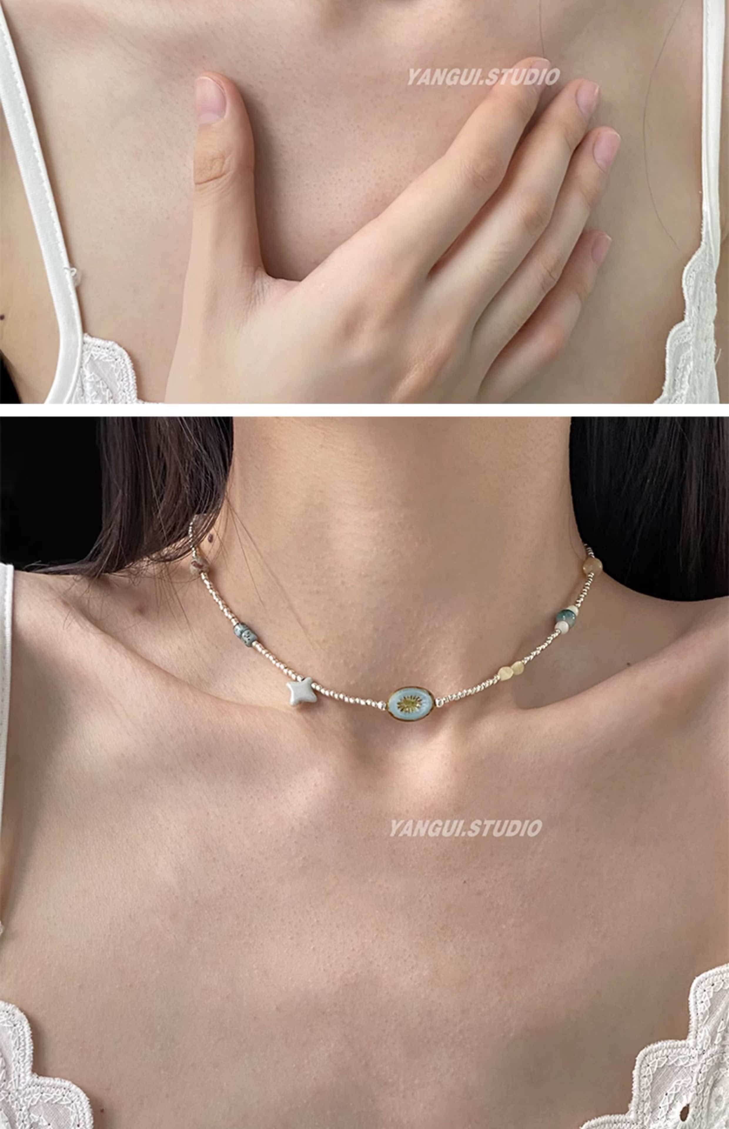 Yangui原創「薄荷星」捷克珠國風鎖骨鏈新中式串珠小眾設計項鏈女