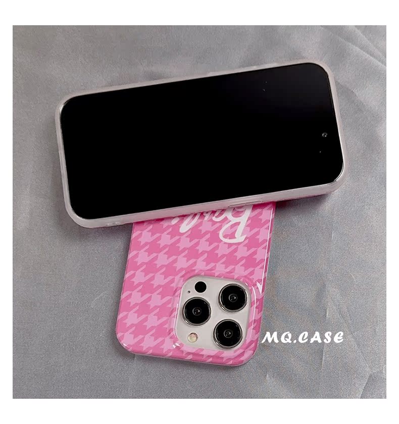 ins芭比粉千鳥格紋愛心適用iphone14promax蘋果13手機殼12新款11帶支架14pro女13promax防摔13創意小眾全包軟