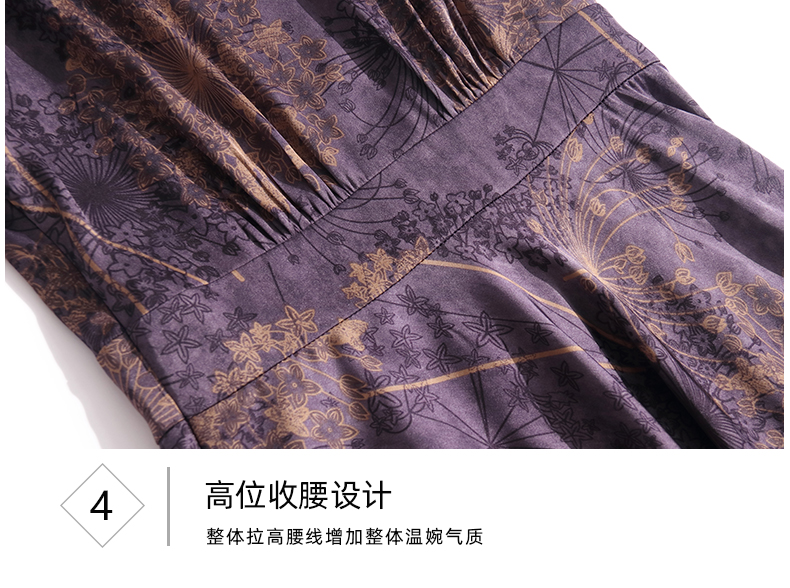 初秋2023新款紫色印花長袖連衣裙修身顯瘦高級感氣質V領a字大擺裙