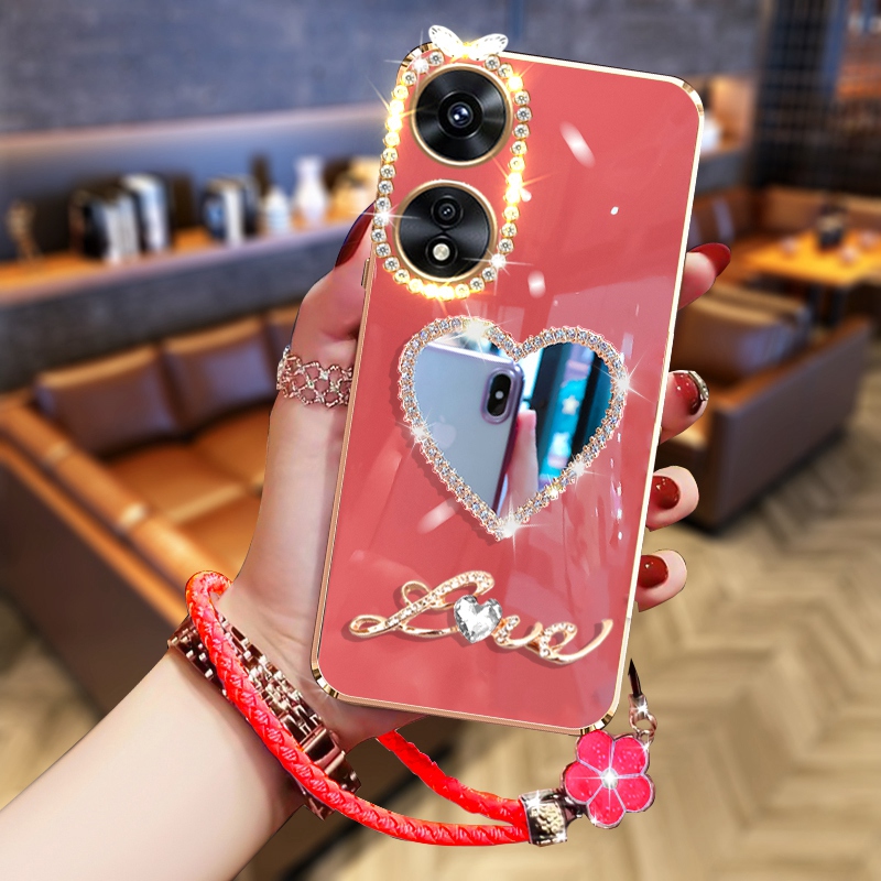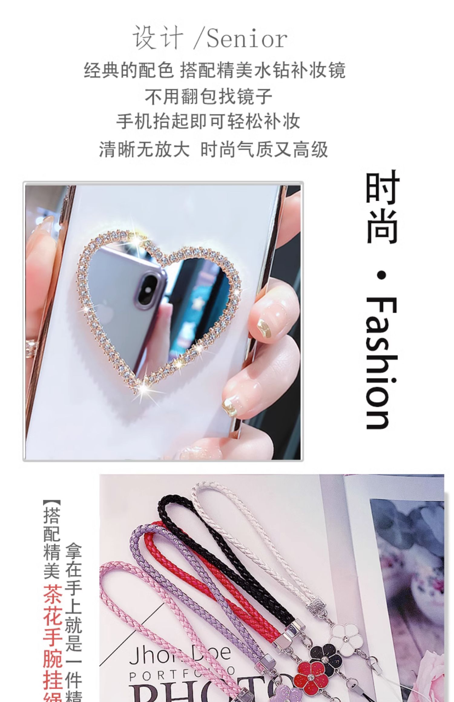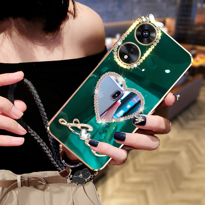 OPPOA58手機殼A58x時尚女款防摔保護套鑲鉆PHJ110鏡頭全包超薄新款A1Pro/A1x高顏值化妝鏡子硅膠軟殼高檔掛繩