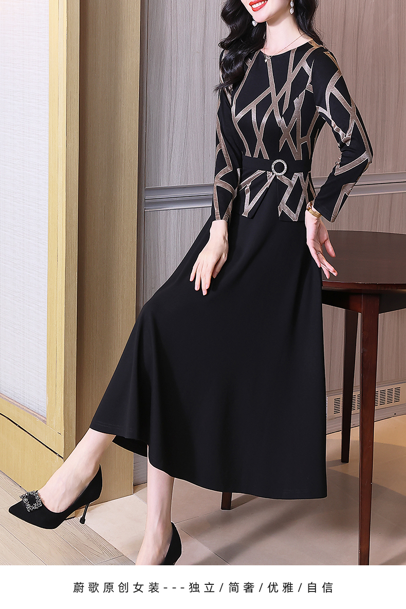 秋季假兩件連衣裙2023新款氣質拼接修身顯瘦大擺裙高級感減齡長裙