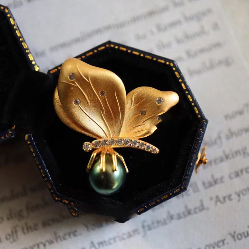 S925銀鍍金蝴蝶珍珠胸針女高檔氣質防走光小清新別針固定衣服百搭