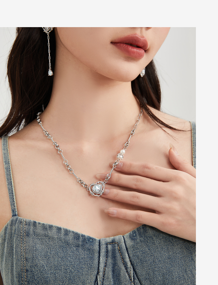 三福荊棘月光項鏈愛心小眾氣質時尚高級設計感珍珠飾品新款823853