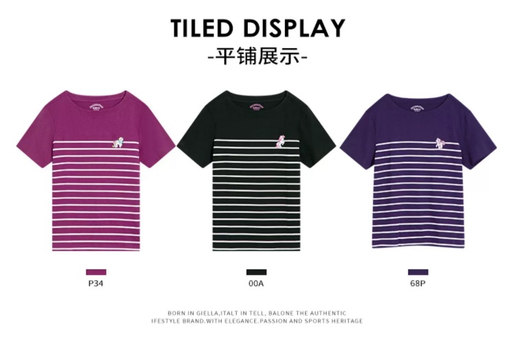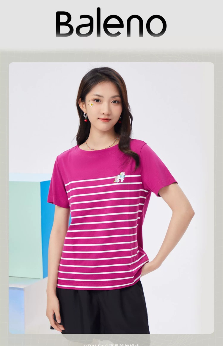 班尼路t恤女柔軟親膚簡單百搭女裝little pony條紋T恤純棉t恤女