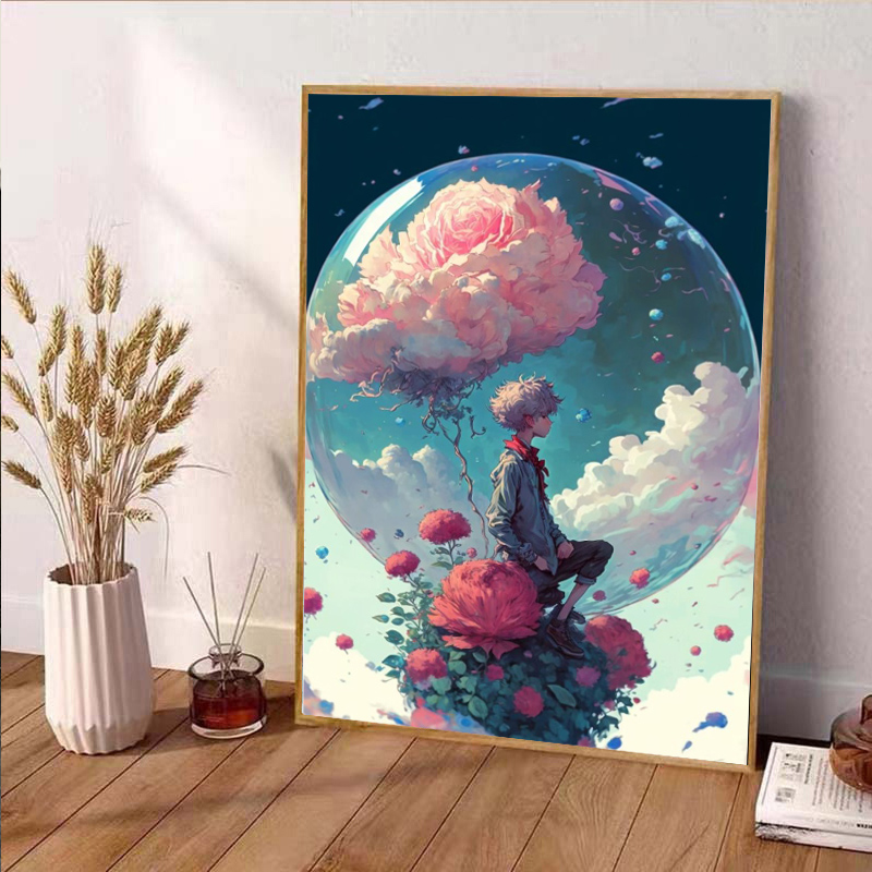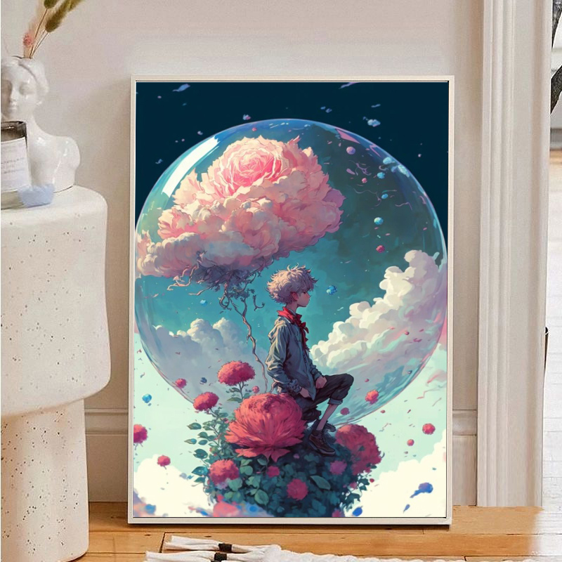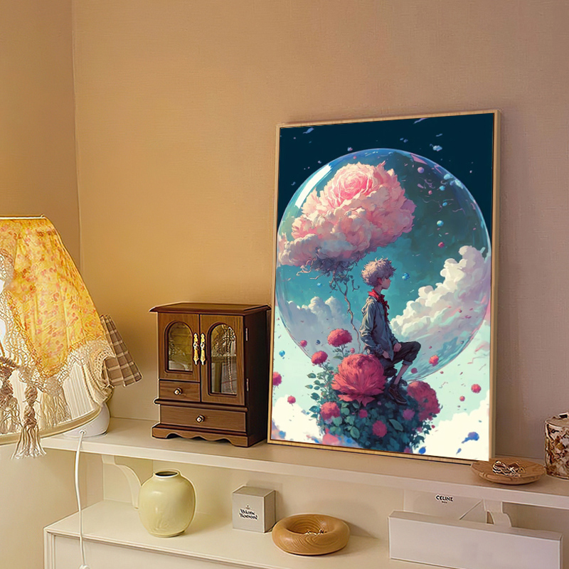 玫瑰花卉鉆石畫2023新款客廳臥室粘貼十字繡卡通小王子鉆石貼畫5d