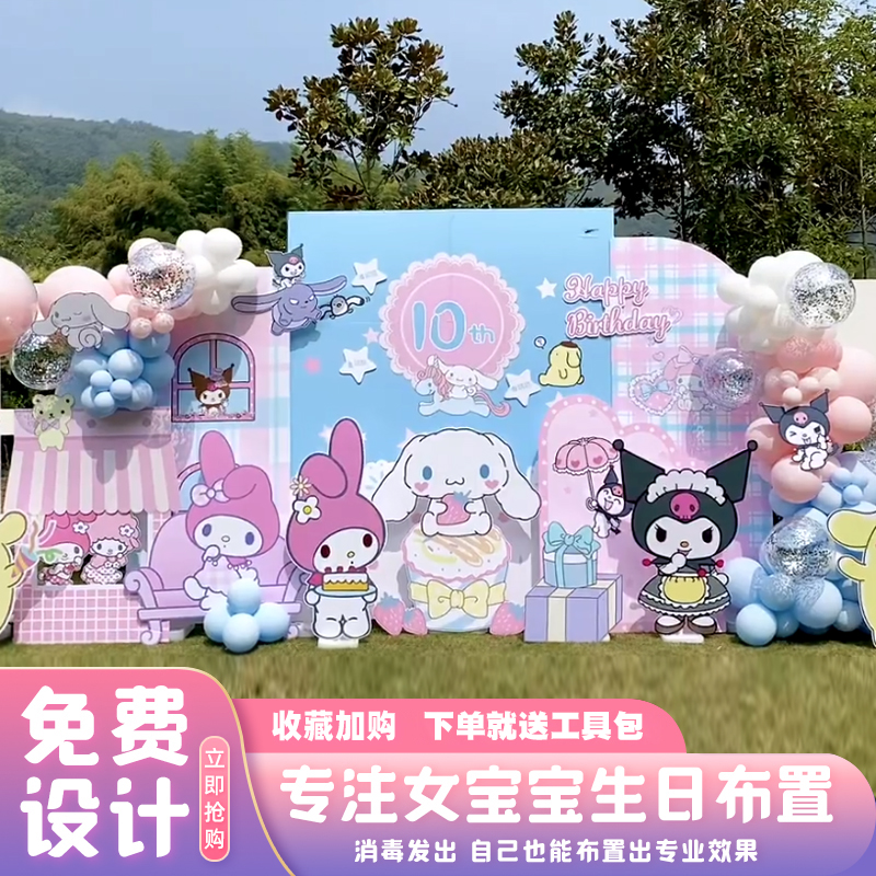 美樂蒂生日裝飾場景布置三麗鷗寶寶百日天滿月宴庫洛米kt板背景墻