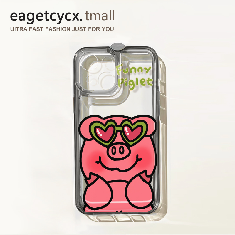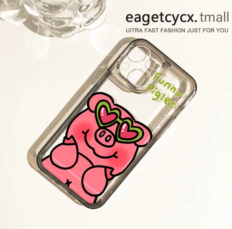 趣味惡搞愛心小豬適用蘋果14promax手機殼iPhone13透明12新款11pro創意1plus可愛5卡通xs少女xr全包x防摔硬殼