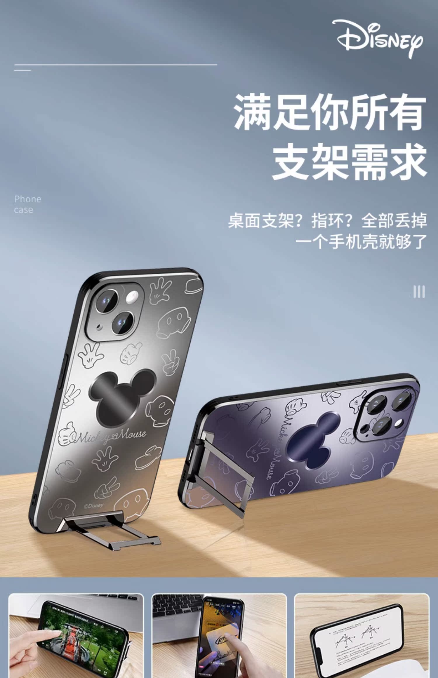 適用迪士尼蘋果15手機殼14帶支架iPhone13ProMax新款米奇頭Pro保護套隱形一體11鏡頭全包超薄X防摔磨砂硅膠