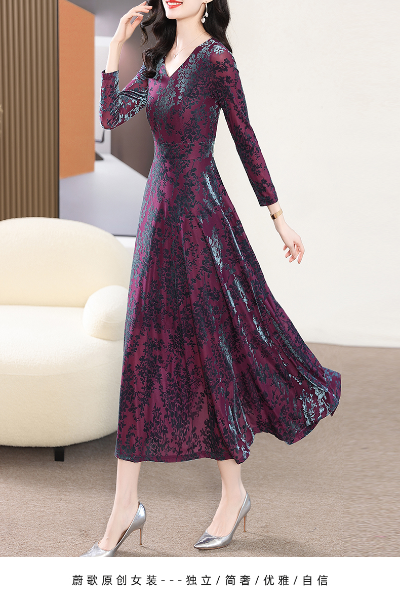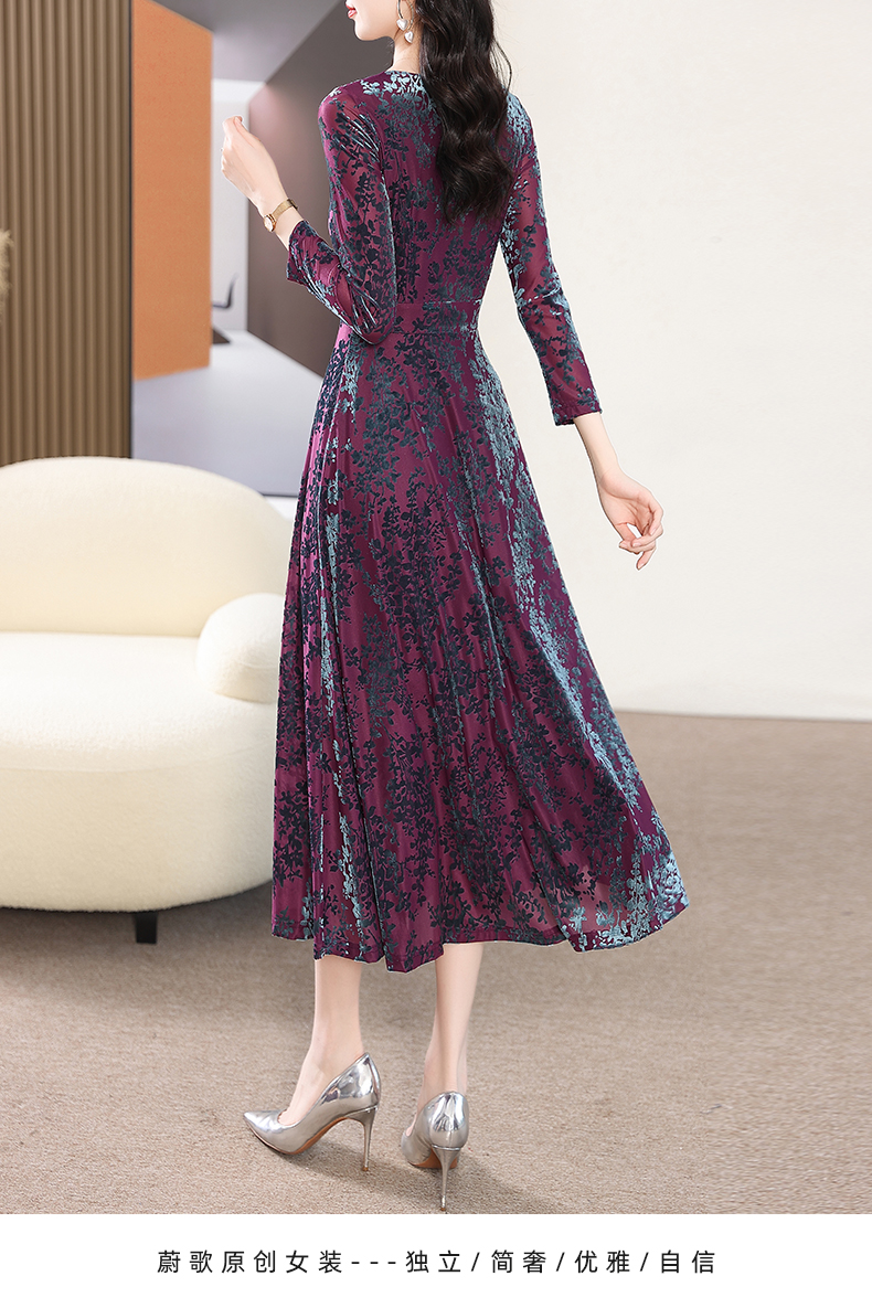 紫色絲絨長款連衣裙女2023秋季新款優雅氣質高級感大擺裙修身顯瘦