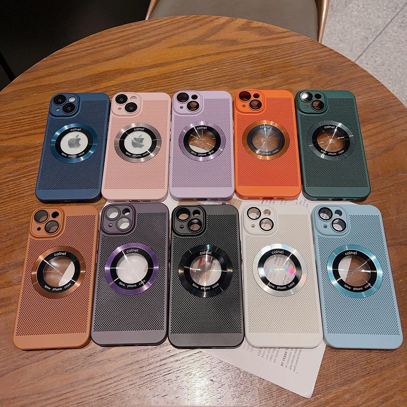 電鍍散熱網適用蘋果15promax手機殼新款iphone14自帶鏡頭膜12超薄防摔保護套11全包透氣15高級感x/xr外殼7/8p
