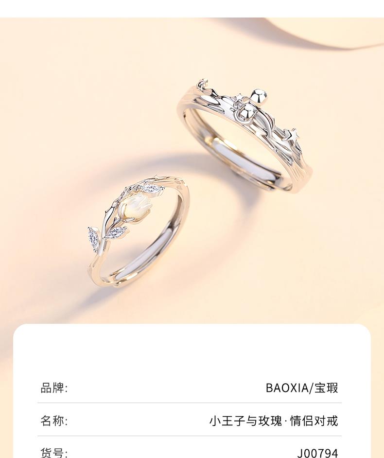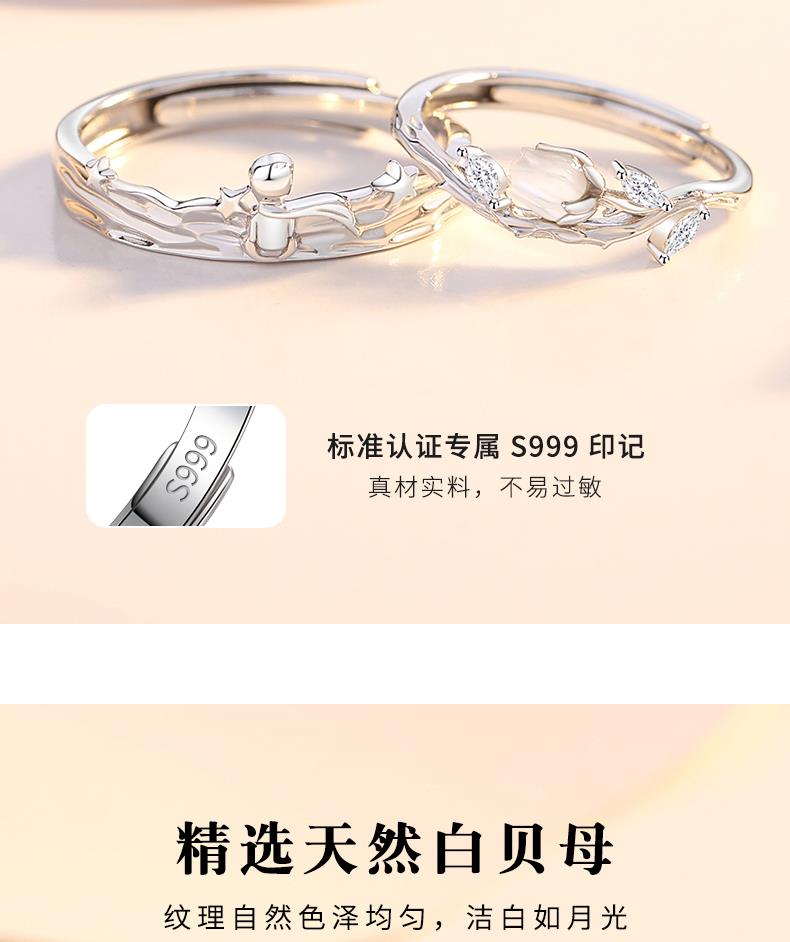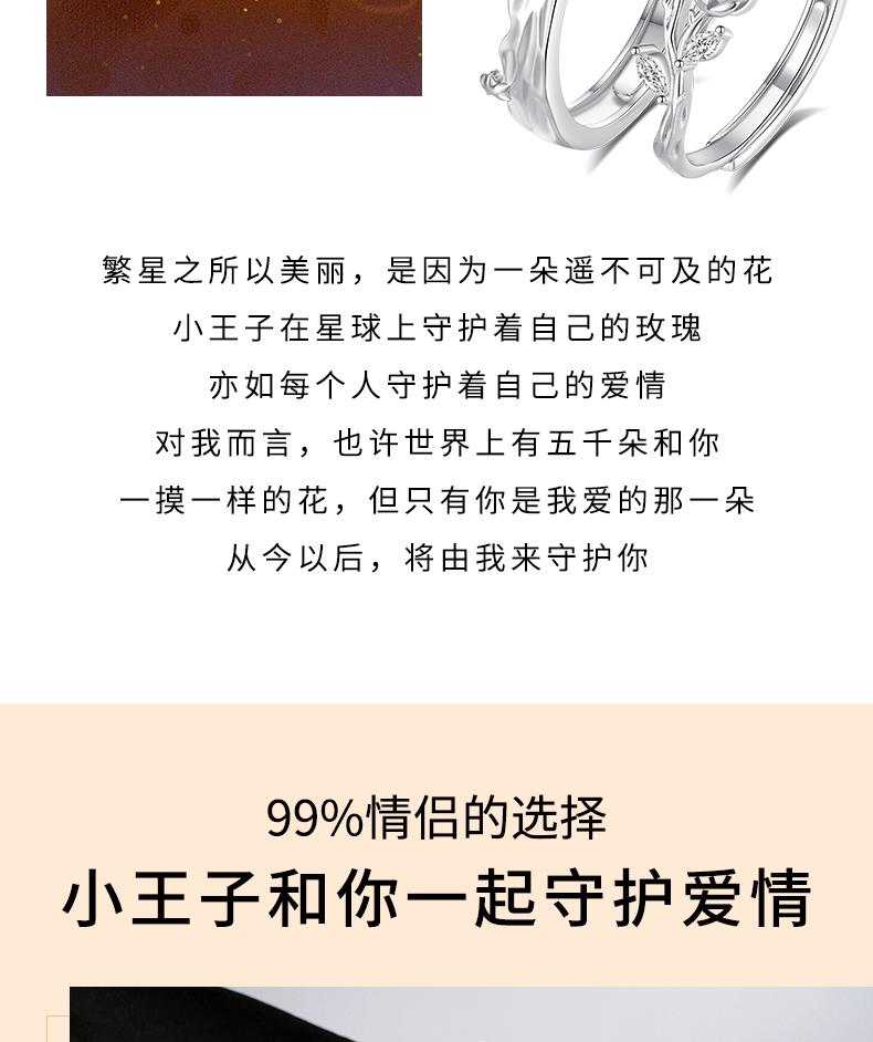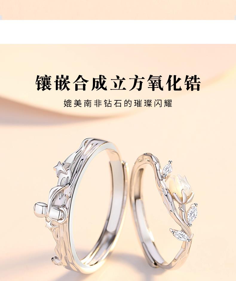 小王子與玫瑰999純銀情侶對戒一對款戒指七夕禮物送女男友情人節