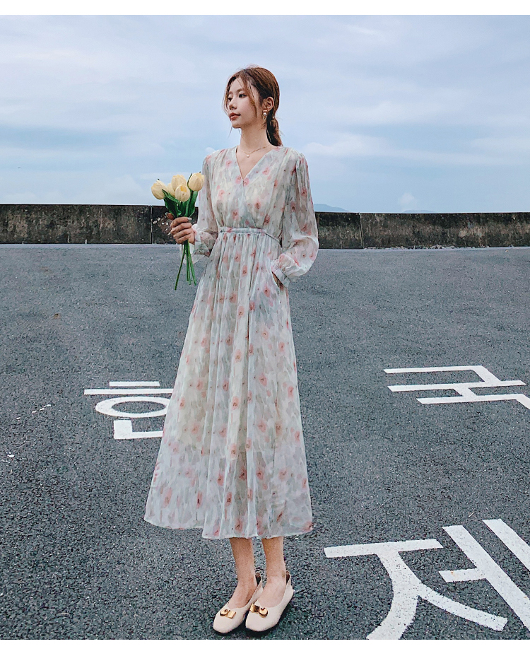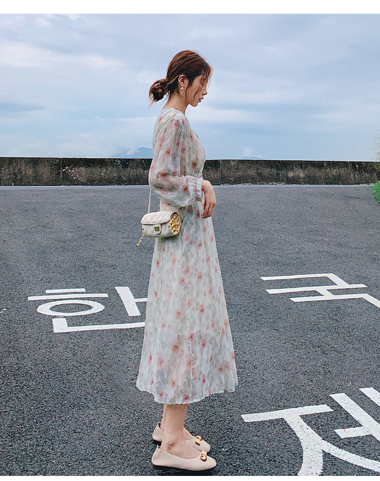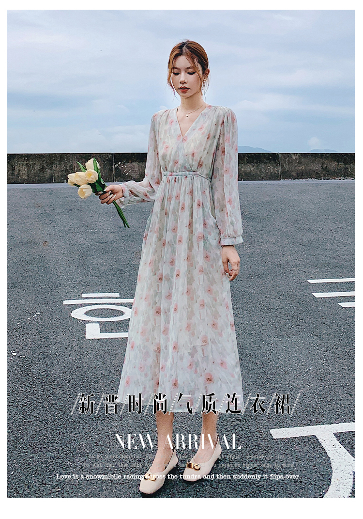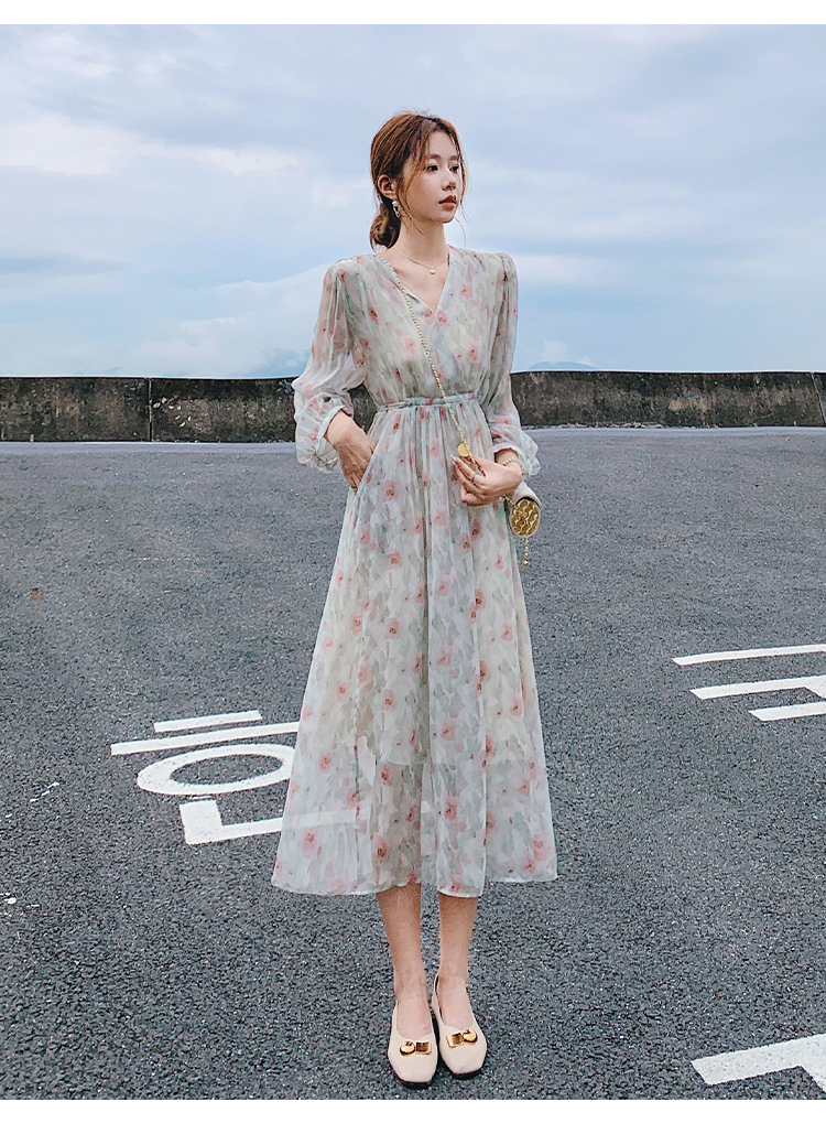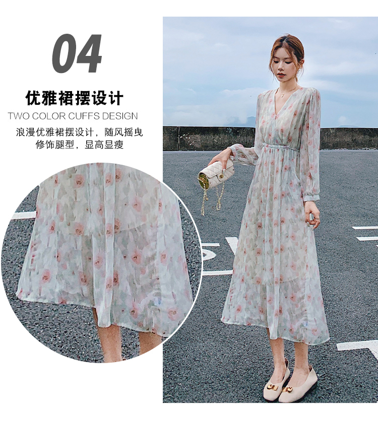 溫柔風雪紡碎花2023早春新款a字裙