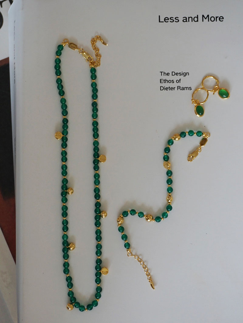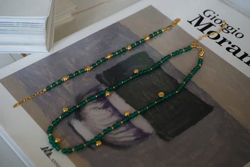 多巴胺彩色綠瑪瑙串珠流蘇鎖骨鏈 S925純銀綠翡翠小圓珠拼接項鏈