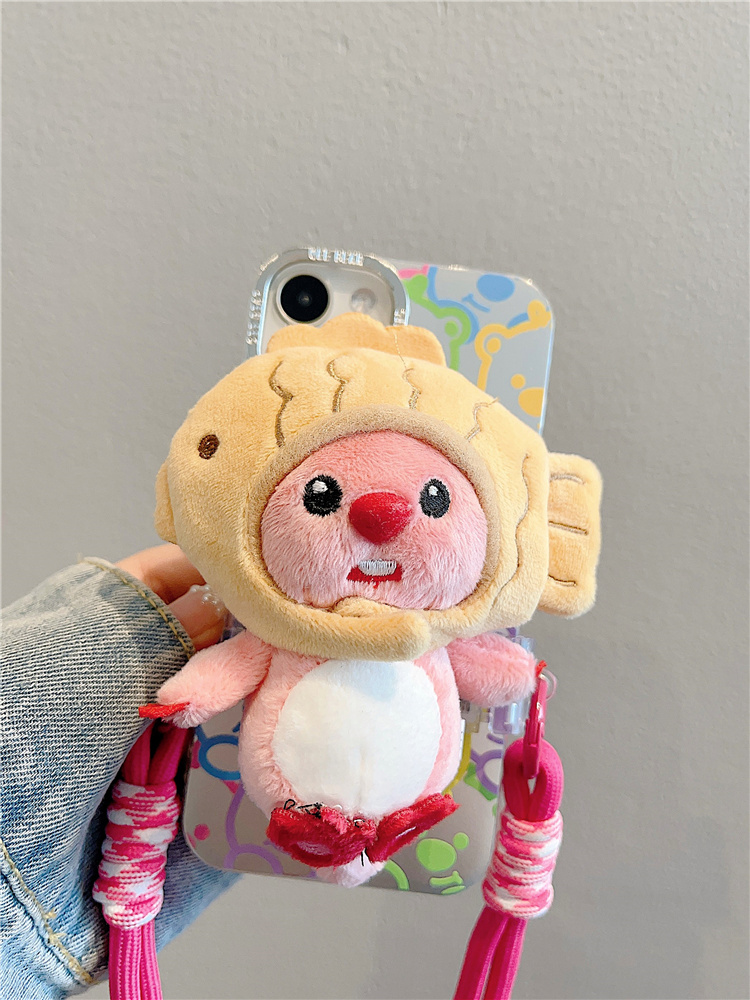 適用蘋果14promax手機殼iphone13毛絨鯛魚燒露比公仔11可愛新款12網紅女款14斜跨掛繩14pro背夾防摔手機套