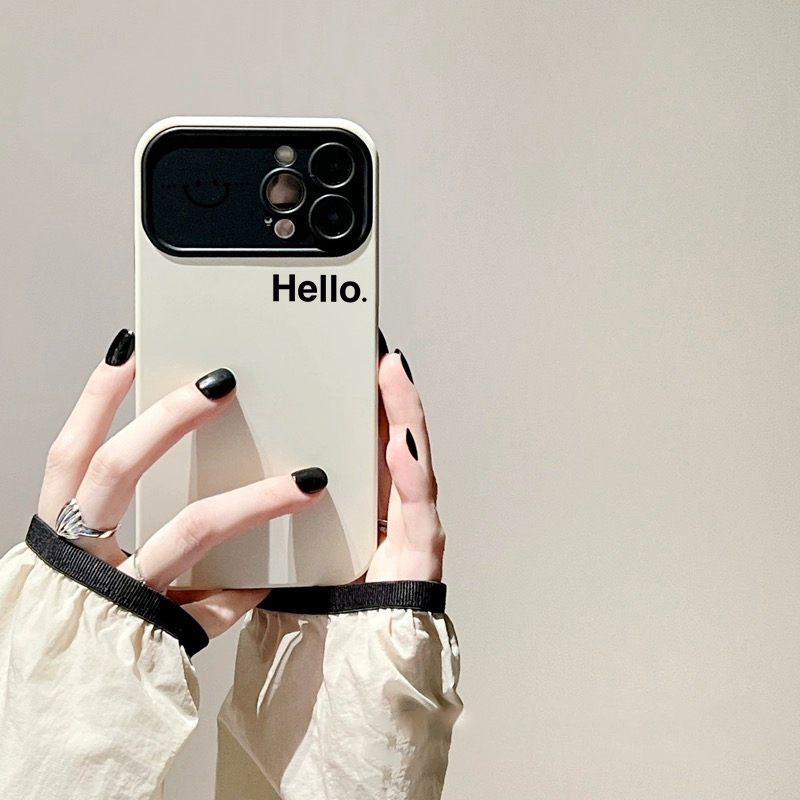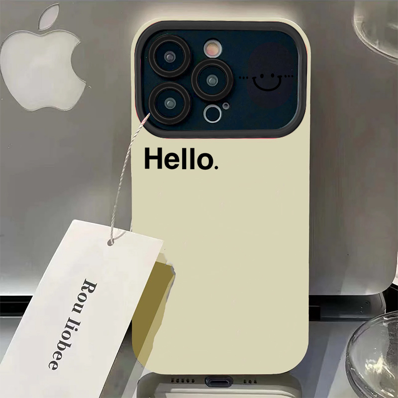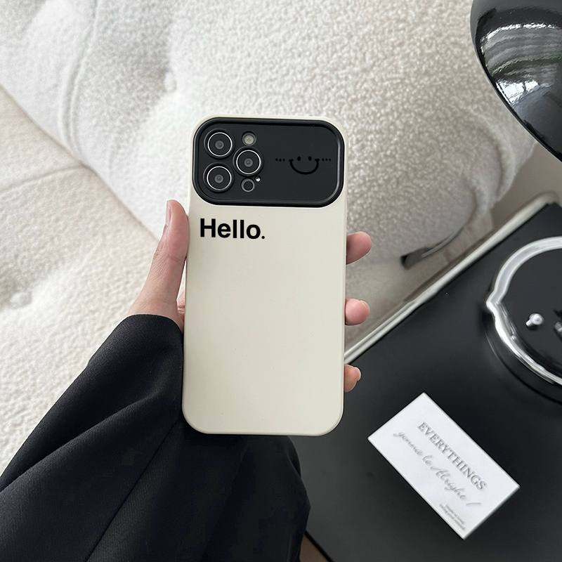 ins日韓簡約英文笑臉適用蘋果14ProMax手機殼iphone13新款14大視窗11高級感12情侶13promax不會撞殼xs保護套