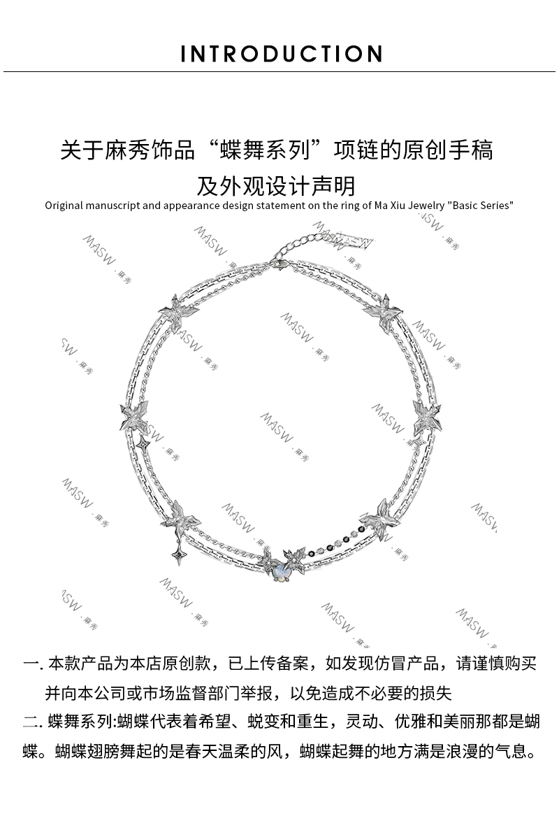 MASW麻秀原創設計蝶舞系列清冷蝴蝶高級感項鏈雙層氣質時尚鎖骨鏈