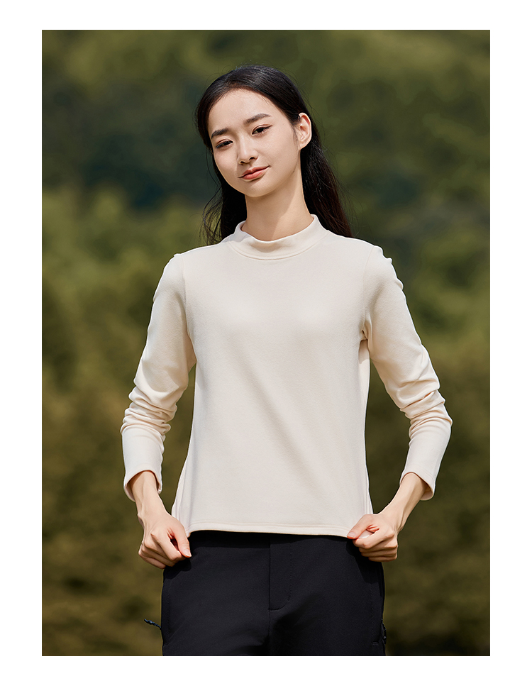 拓路者秋打底衫女半高領長袖t恤上衣內搭加絨搖粒絨百搭圓領體恤