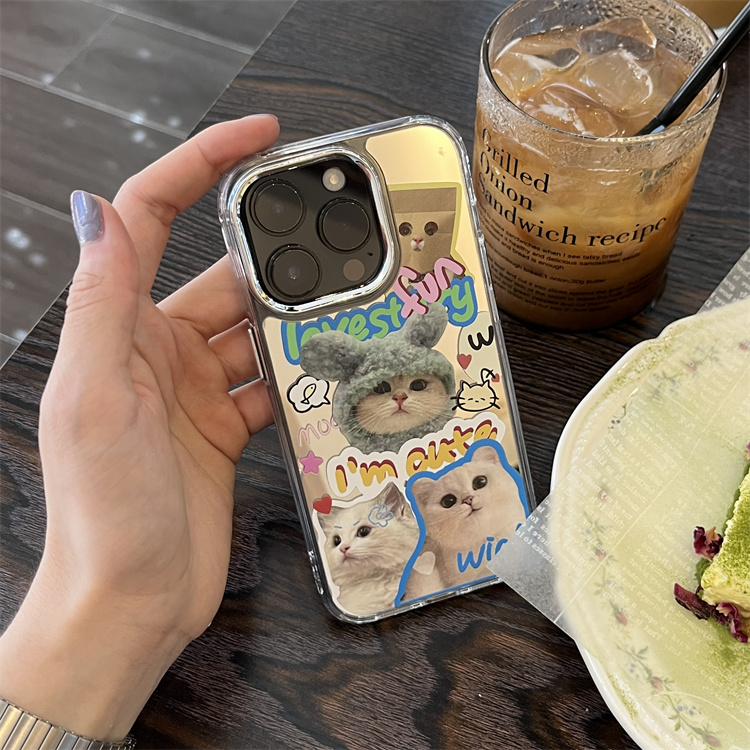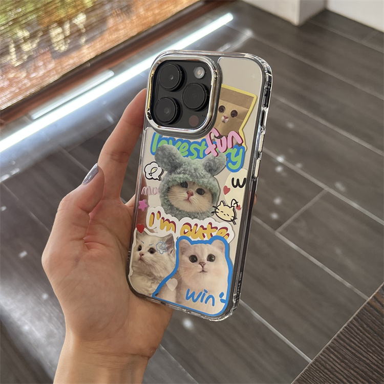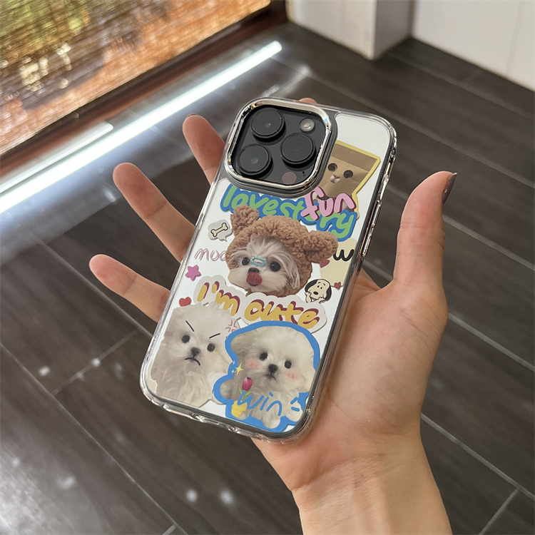 原創韓國萌寵貓咪小狗情侶款適用iphone15promax蘋果13手機殼15pro潮12小眾防摔13pro高級14情侶11鏡面保護套