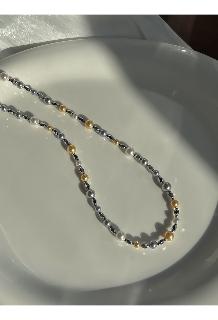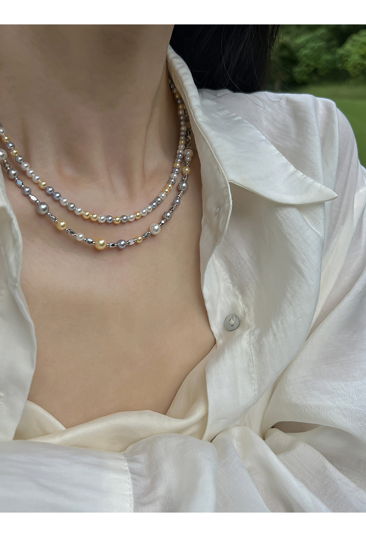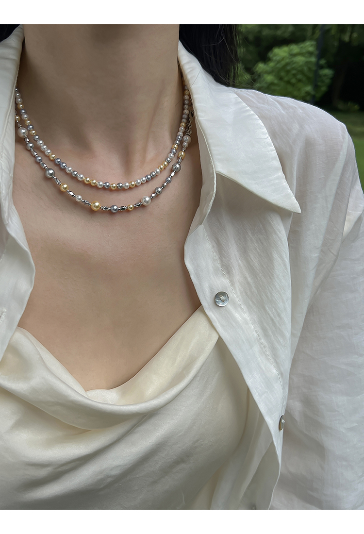 方糖家 經典白真多麻色拼色高品質混彩珍珠項鏈小眾設計感頸鏈女