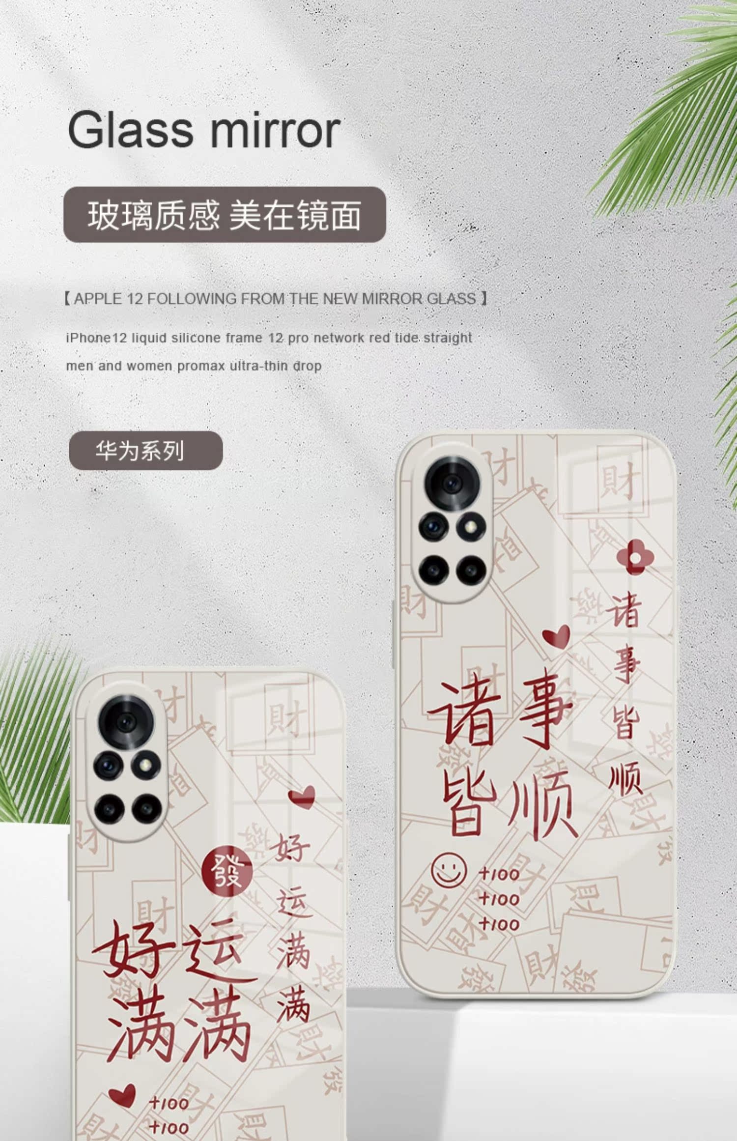 創意文字手機殼適用華為p60發財mate50pro好運榮耀90情侶80簡約nova11男40女30新款10諸事皆順9/8/7se玻璃20